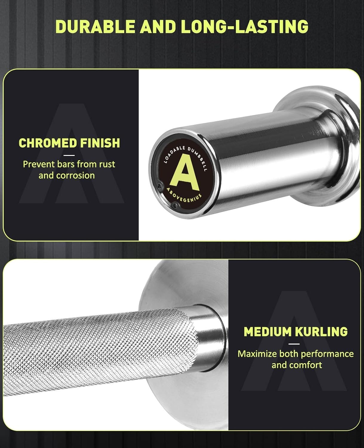 Pair of 16″ Olympic Dumbbell Handles Loadable Dumbbell Bars for 2-inch Olympic Weight Plates Ideal for Home Gym Strength Training, 2 Pair of Spring Collars Included