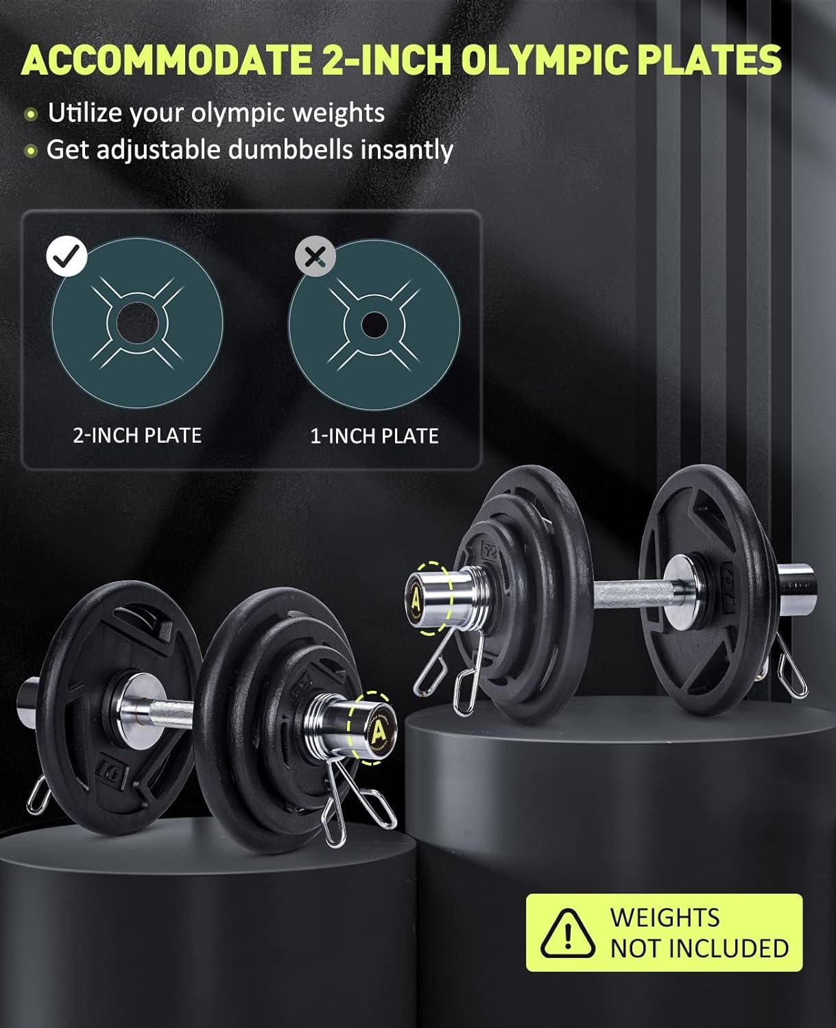 For Olympic Plates: These dumbbell handles are compatible with olympic weights with 2″ holes. Get these bars and utilize your weights to make your own adjustable dumbbells. No need to buy a complete set of traditional DBs. Save your money and storage space