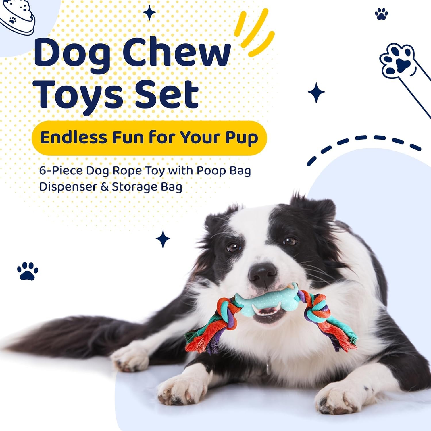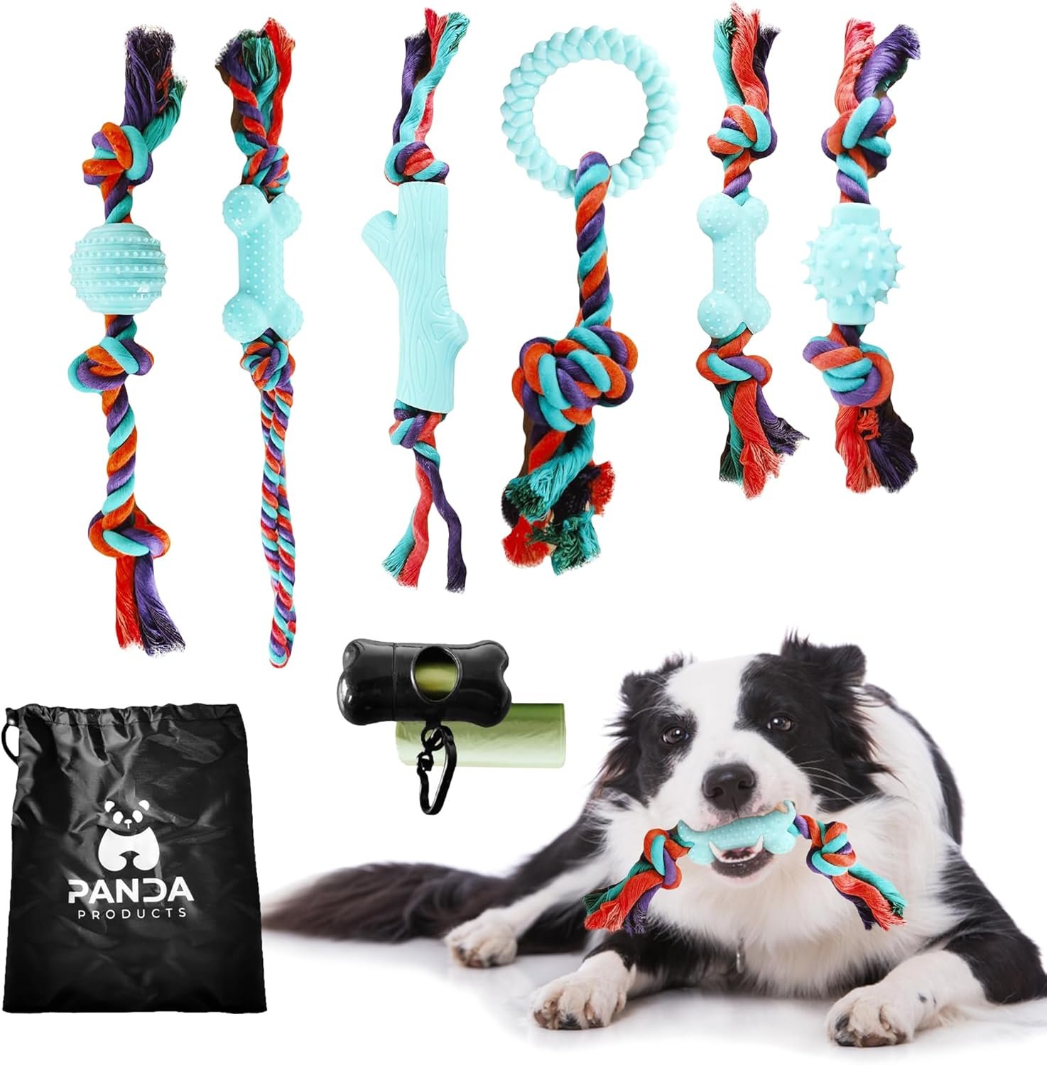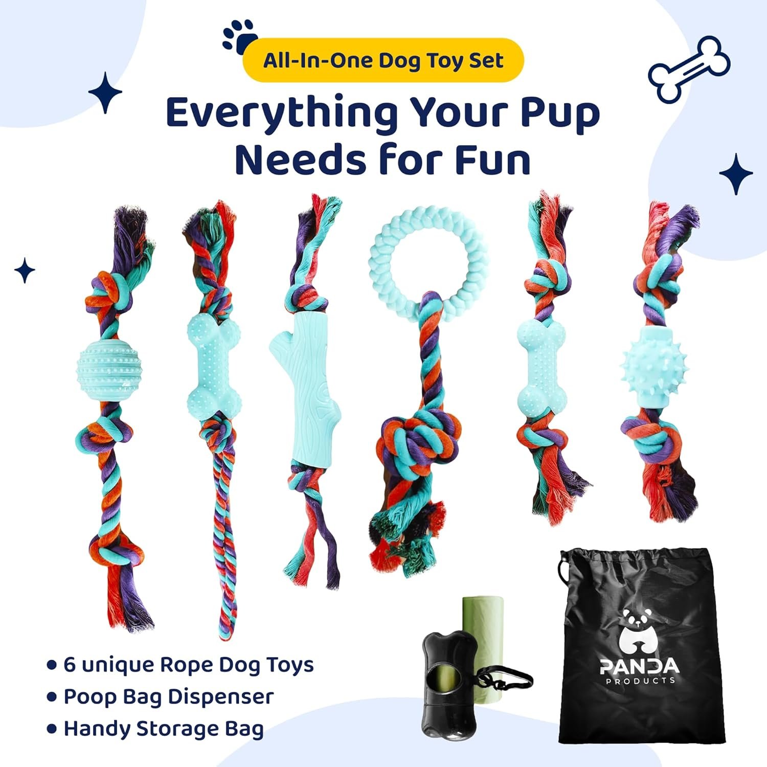 CONVENIENT ACCESSORIES – The dog toy set includes a waste bag dispenser and a handy storage bag, making it easy to keep your dog ropes organized and accessible, handy for pet owners on the go.