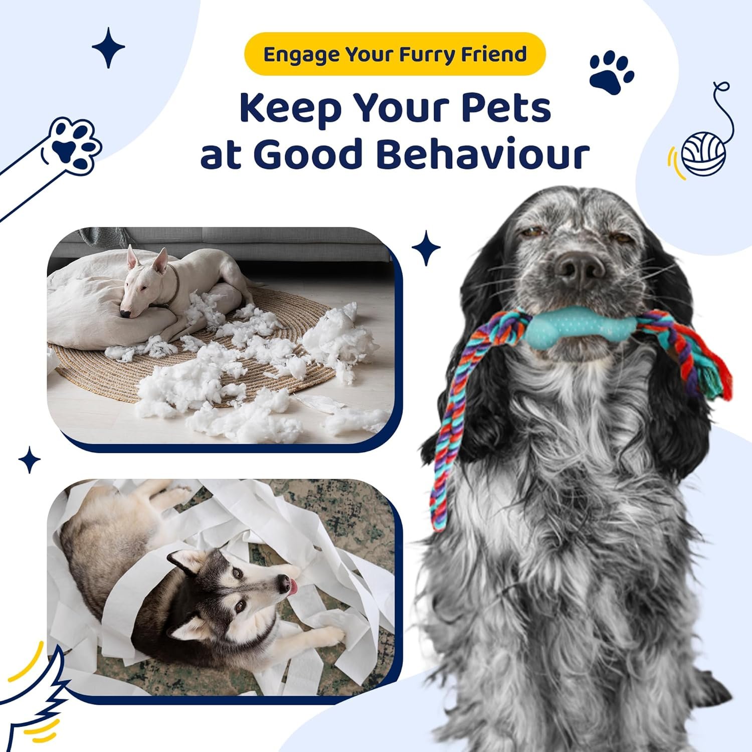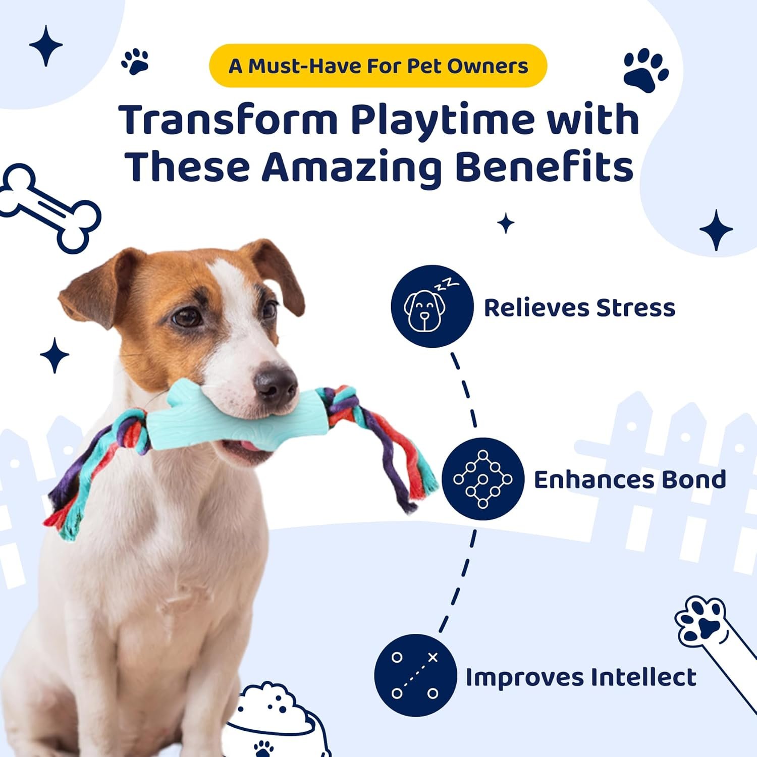 BUILT TO LAST – Crafted from premium-quality rubber and cotton, our dog toys pack is bite-resistant and durable, ensuring long-lasting enjoyment. You can trust our dog activity toys to withstand even the most enthusiastic chewers.