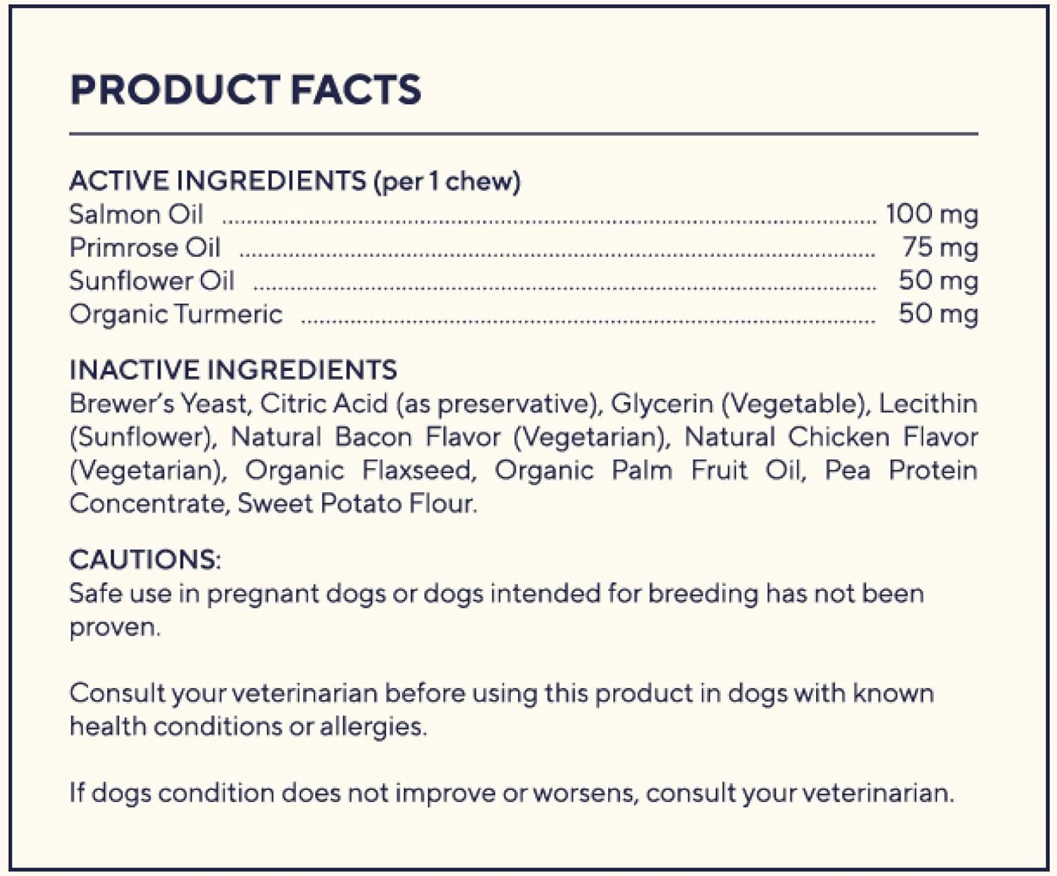 Pawfy Skin & Coat Ingredients: Salmon Oil, Primrose Oil, Turmeric, Sunflower OilPawfy Skin & Coat Ingredients: Salmon Oil, Primrose Oil, Turmeric, Sunflower Oil