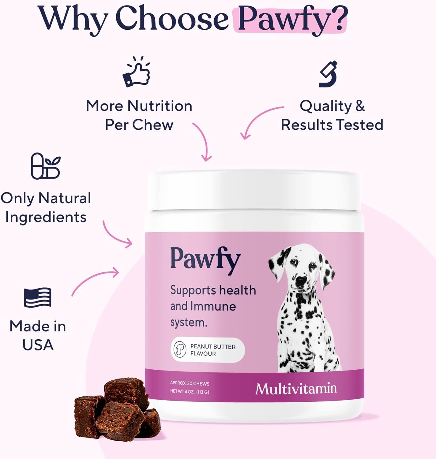 Pawfy Dog Multivitamins 15 in 1 | Dog Vitamins for Skin & Coat Allergies – Supports Overall Health | Advanced Senior Dog Supplements Itch Relief | Puppy Tasty Vitamin C Chews – 30 Count