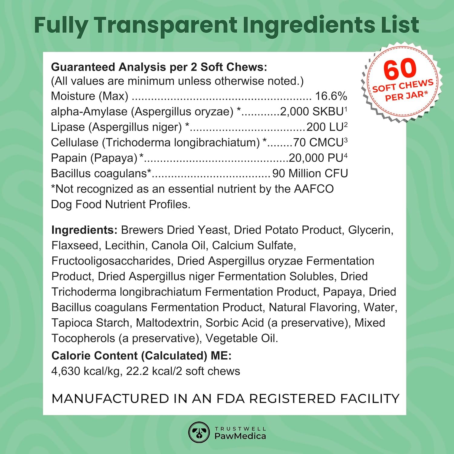 Support Healthy Dog Digestion – A Pet Probiotic for dogs helps support dog digestive enzymes and assists healthy dog vitamin absorption. Enzyme chews for dogs & digestive enzymes for pets help your dog’s GI tract work smoothly and gives your dog gas relief.
