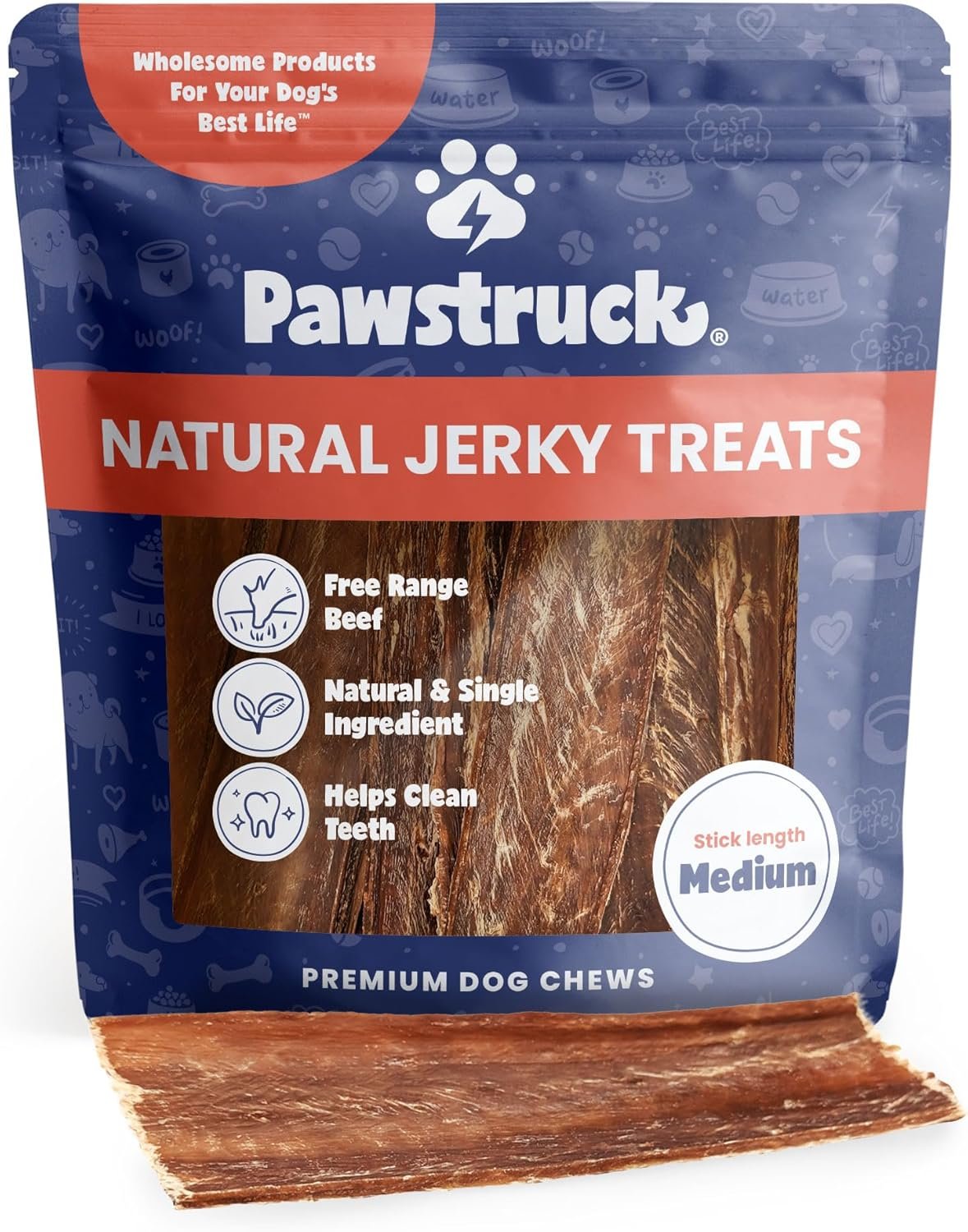 Pawstruck Premium Beef Jerky Dog Treat Chews, Medium 4″-6″ Strips – Hip Joint Health Naturally Rich in Glucosamine & Chondroitin No Added Preservatives – 15 Count (Pack of 1) – Packaging May Vary