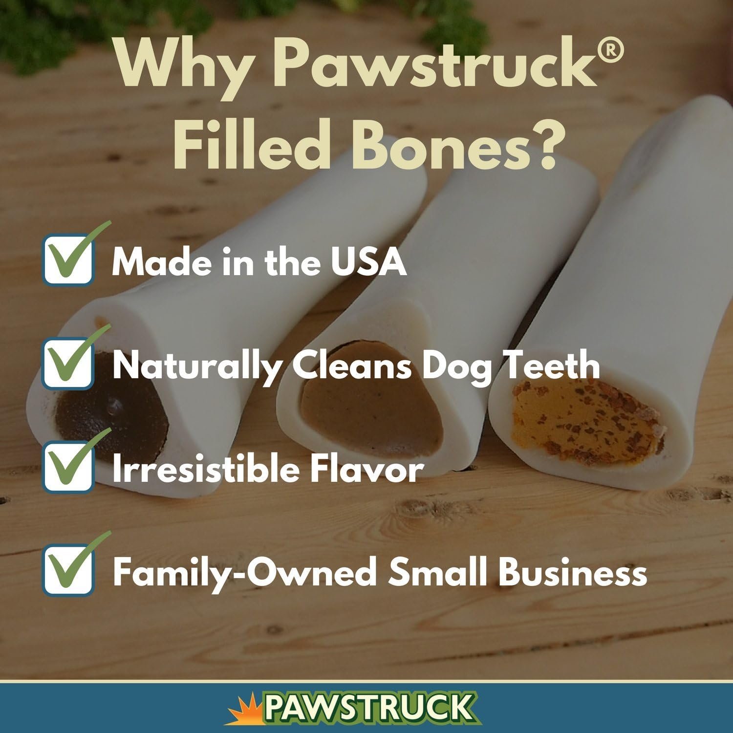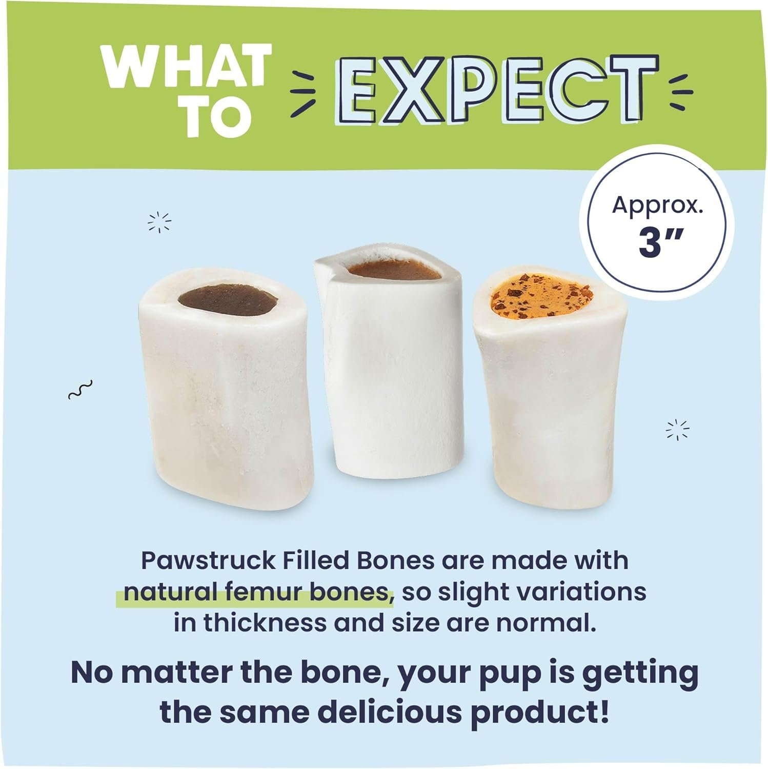 Pawstruck Small 3” Filled Dog Bones Variety Pack – Peanut Butter, Cheese & Bacon, Beef Flavors – Made in USA Long Lasting Stuffed Femur Treat for Aggressive Chewers – Pack of 3 – Packaging May Vary