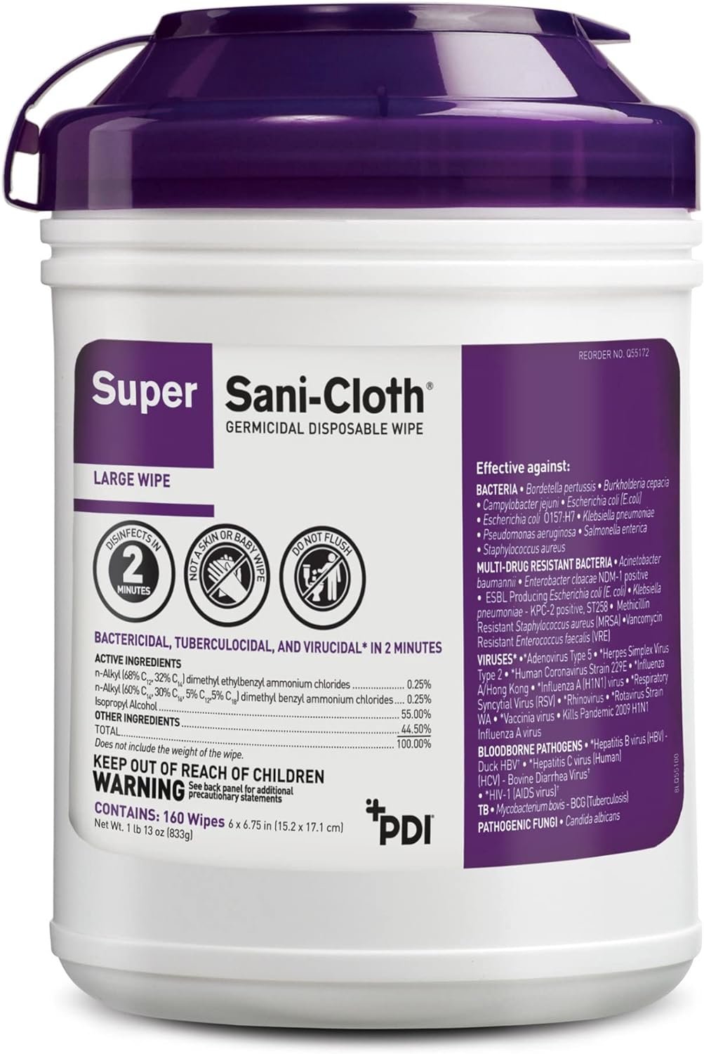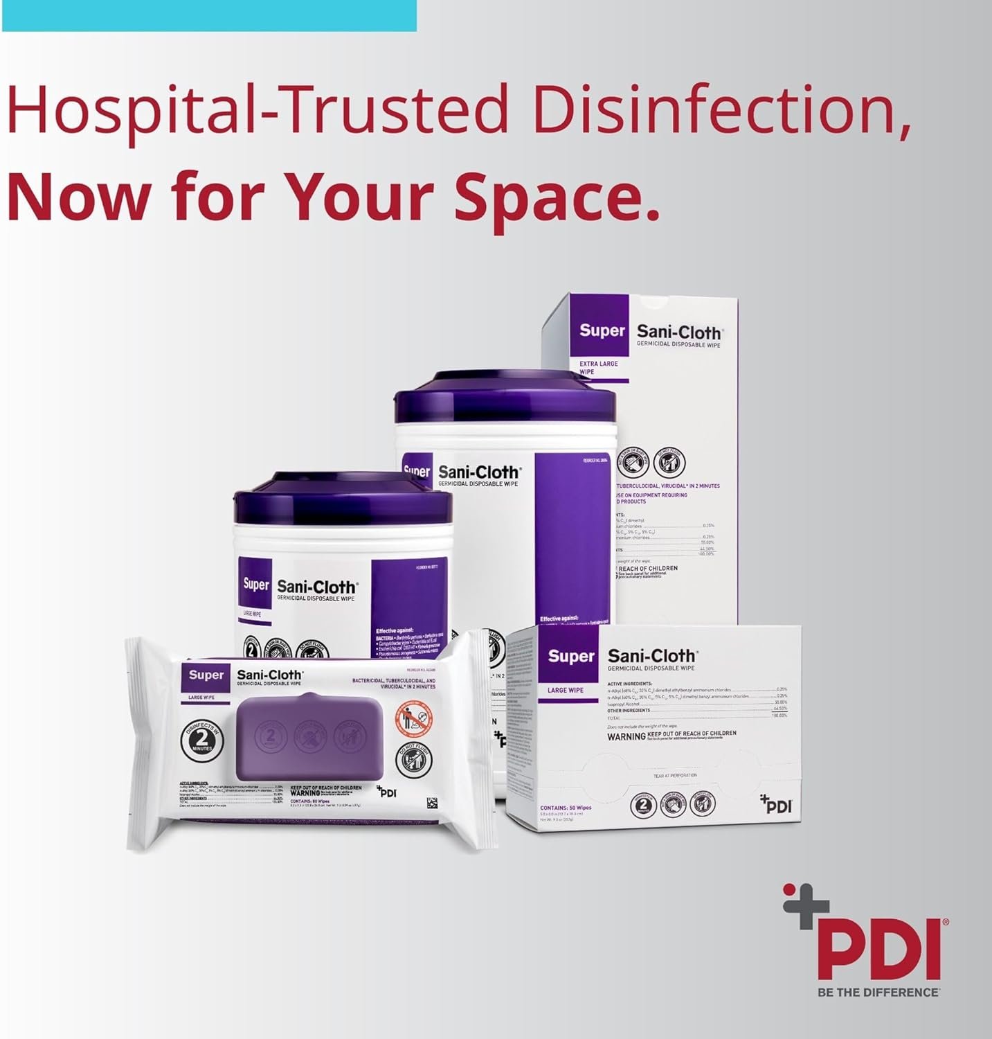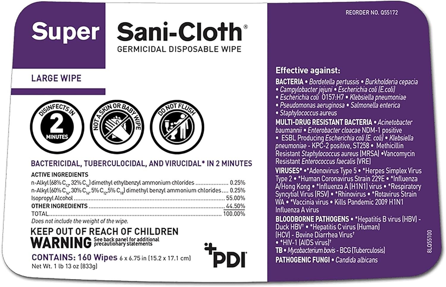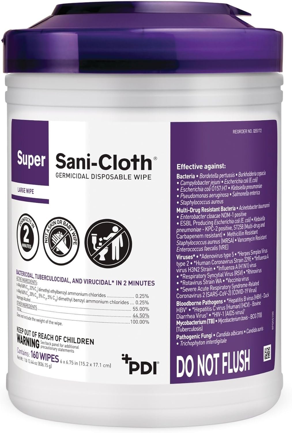 Be the first to review “PDI Super Sani-Cloth Germicidal Disposable Wipe, White, 6 X 6-3/4″, 160 Count”