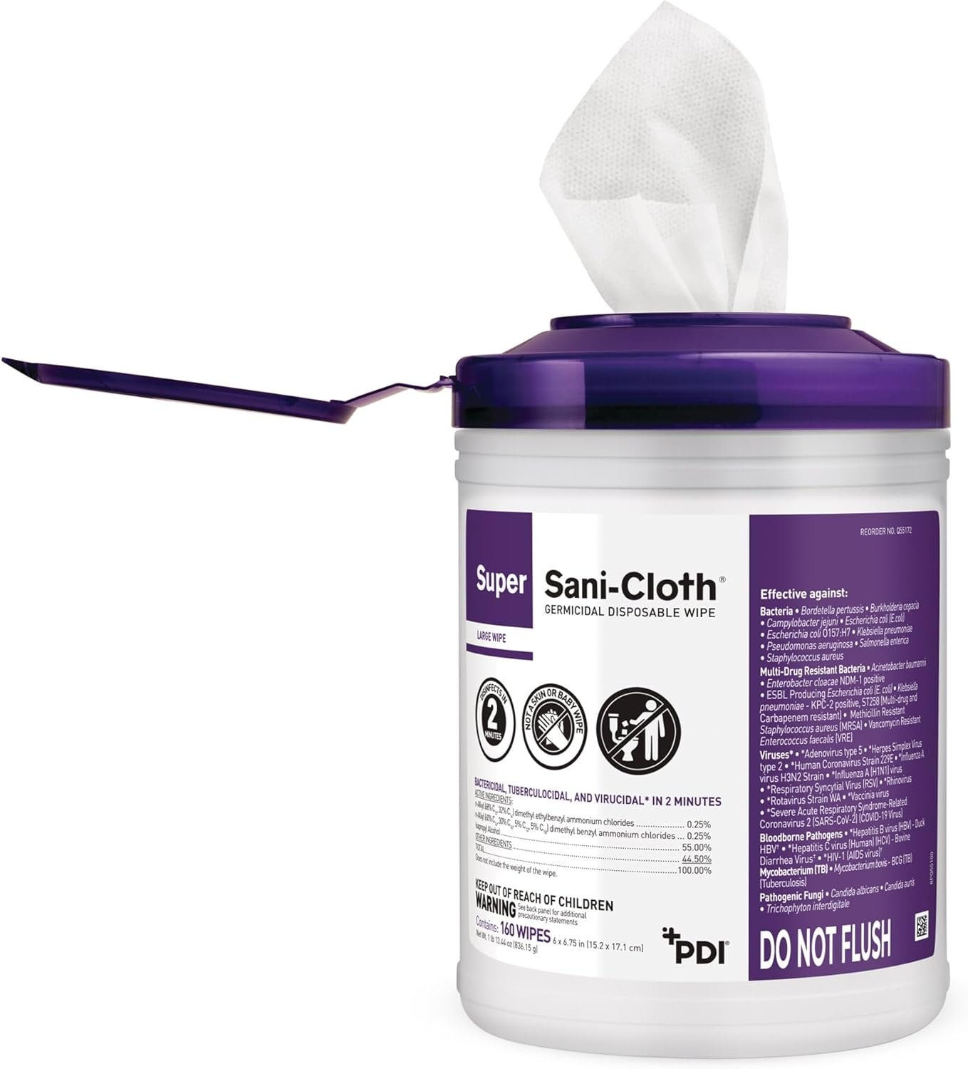 PDI Super Sani-Cloth Germicidal Disposable Wipe, White, 6 X 6-3/4″, 160 Count