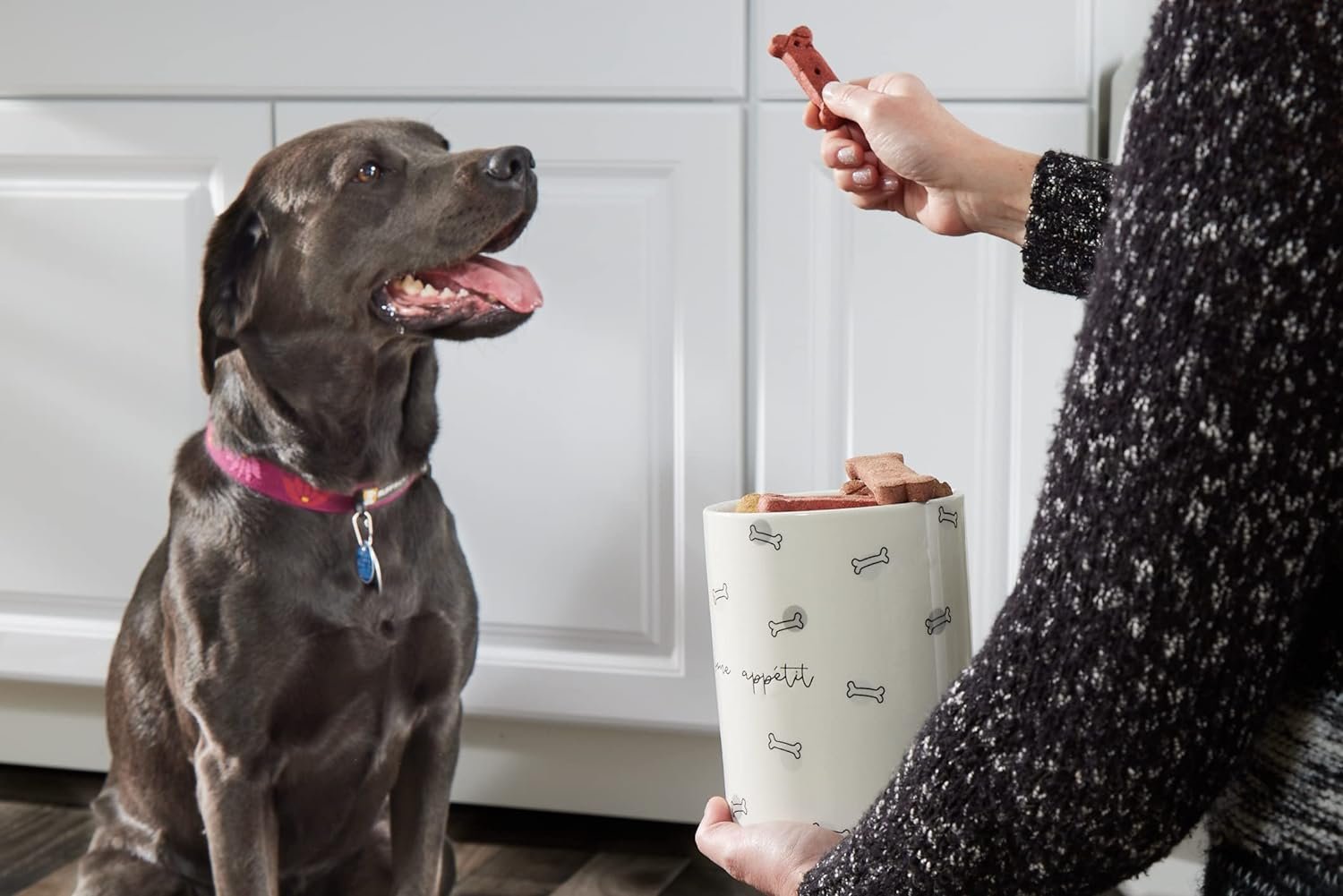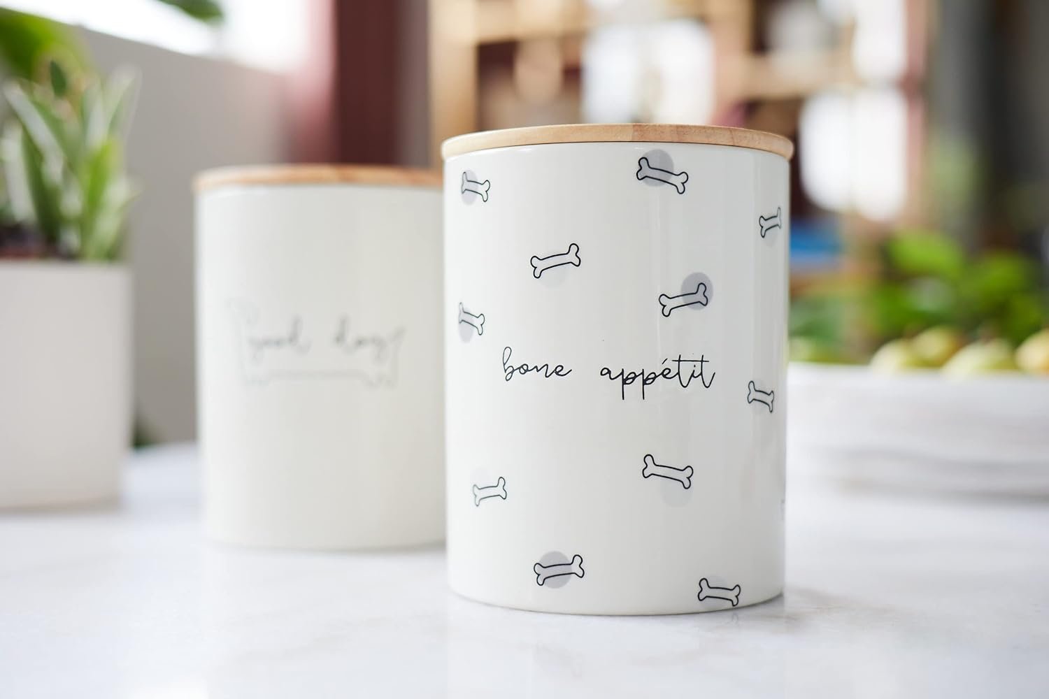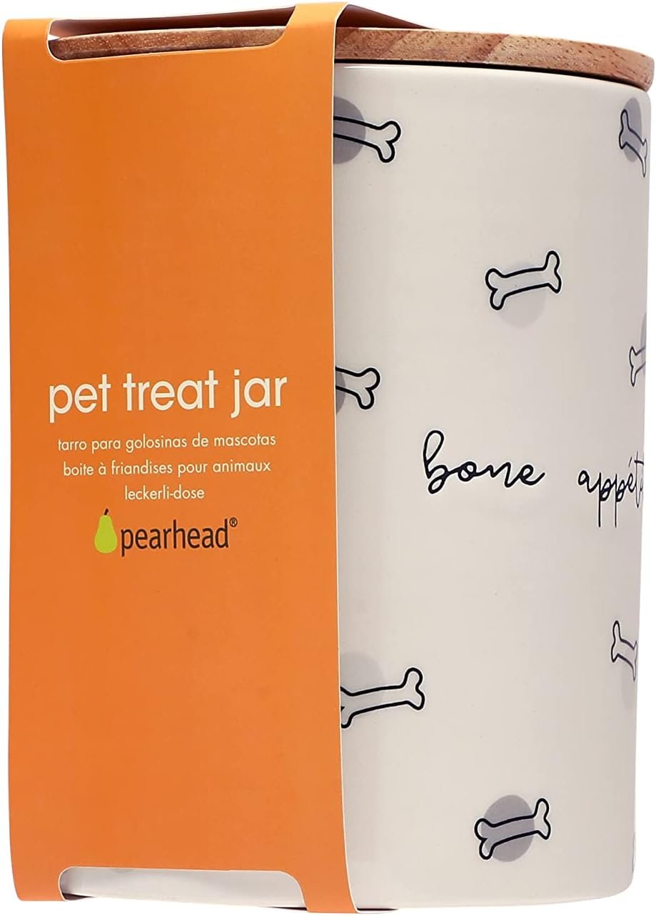 Ceramic Dog Treat Jar: Store your furry friends favorite treats in style with this adorable, bone appetite treat jar by Pearhead. Big and tall enough for small dog treats or large dog treats, this dog treat container is the perfect choice for dogs of all sizes