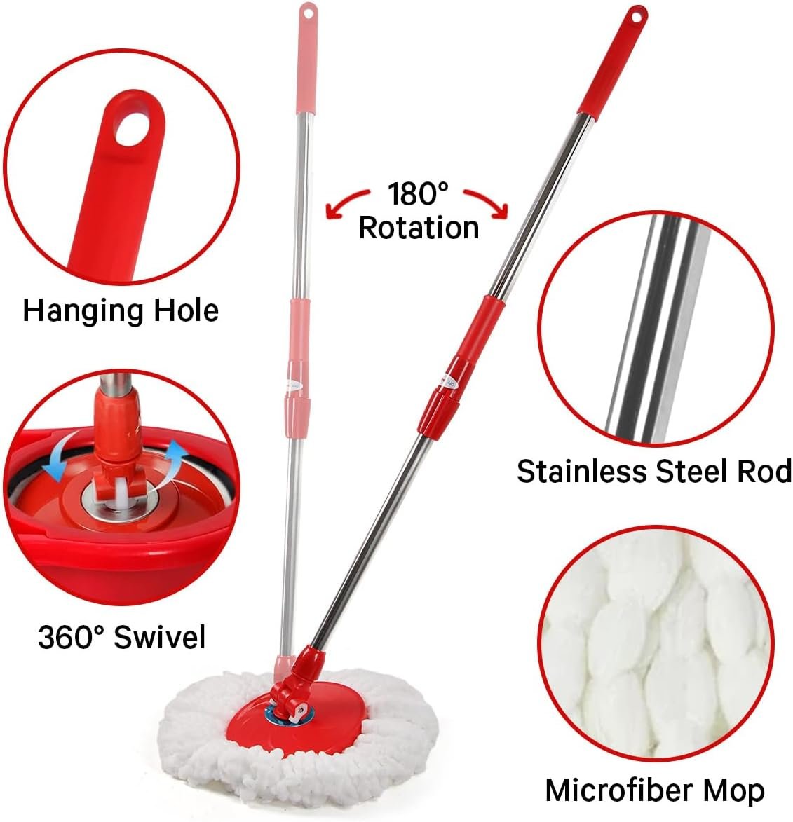 LABOR-SAVING FOOT PRESSURE SPIN MOP – Experience effortless cleaning with this exclusive spin mop and bucket. Designed for ease, the labor-saving foot pressure spin mechanism allows for hands-free wringing. The adjustable stainless steel handle makes it perfect for all your floor cleaning needs. This innovative mop and bucket with wringer set for home use ensures a hassle-free and efficient cleaning experience.