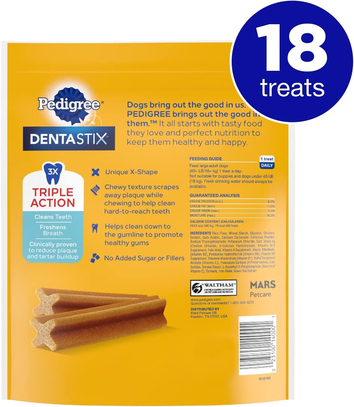 Contains one (1) 14.99 oz. 18-count pack of PEDIGREE DENTASTIX Original Large Treats for Dogs