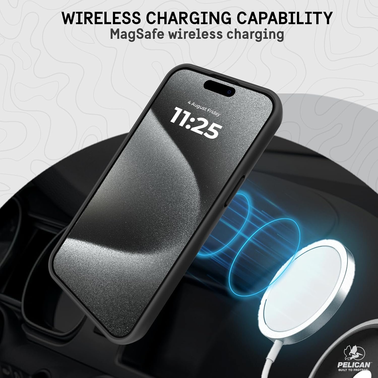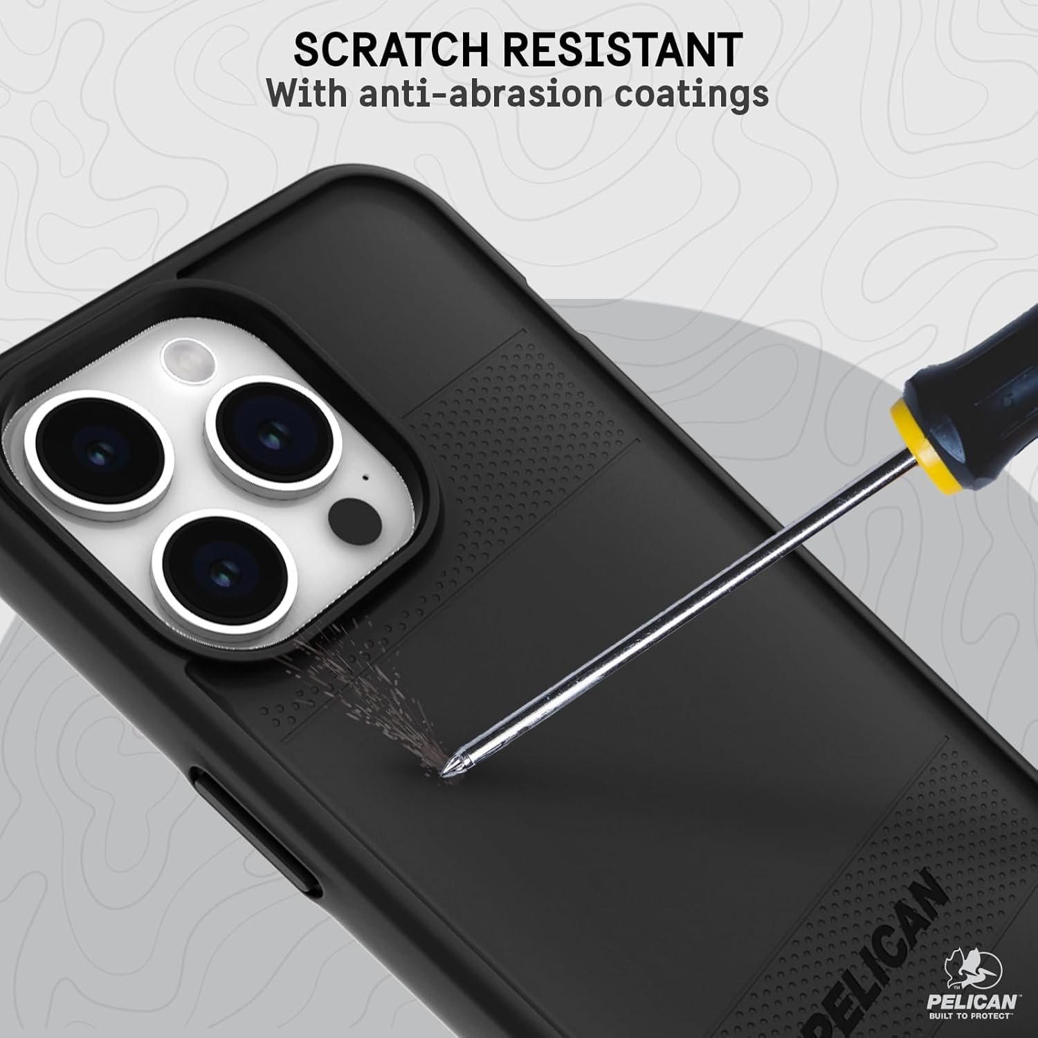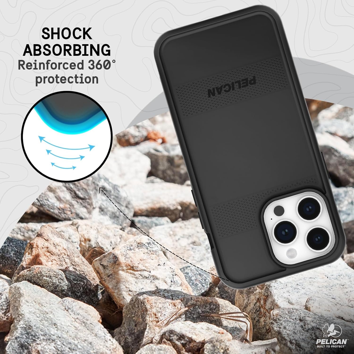 Protector Series Pelican Phone Case: Gear up your phone with the Pelican iPhone 15 Pro Max MagSafe case, engineered with a rigid, impact-resistant outer shell & a shock-absorbing rubber lining that provides military-spec protection. This MagSafe iPhone 15 Pro Max case combines a minimalist look with top-tier functionality & 100% weather-resistant materials to protect against the elements. Feel the solid grip of the Pelican iPhone 15 Pro Max case for Apple, always adventure-ready!