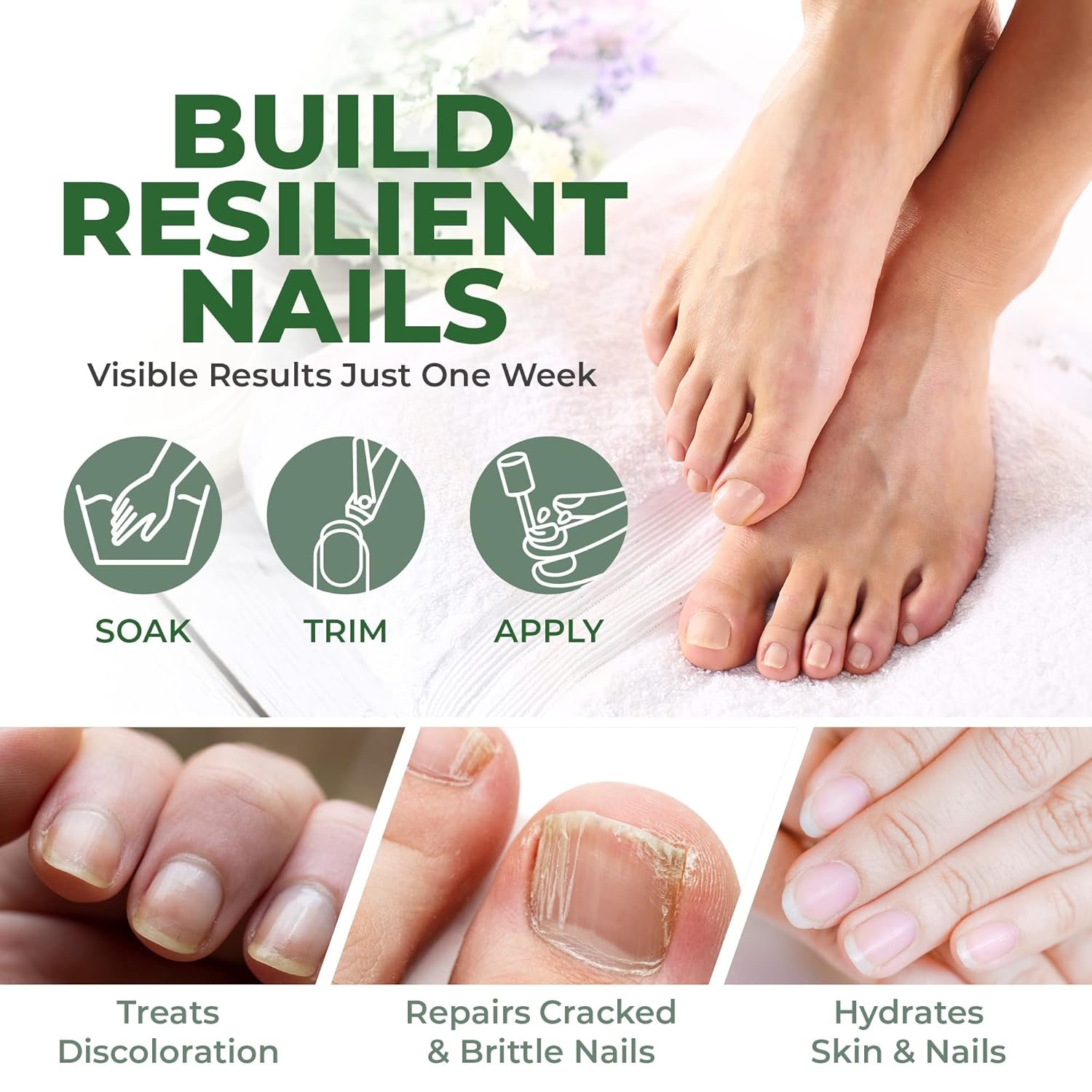 May Repair Damage & Build Resilient Nails – The foot treatment extra strength action goes straight to work. Simple to use. For best results, soak and clip nails before use. Apply nail treatment using the included brush applicator.