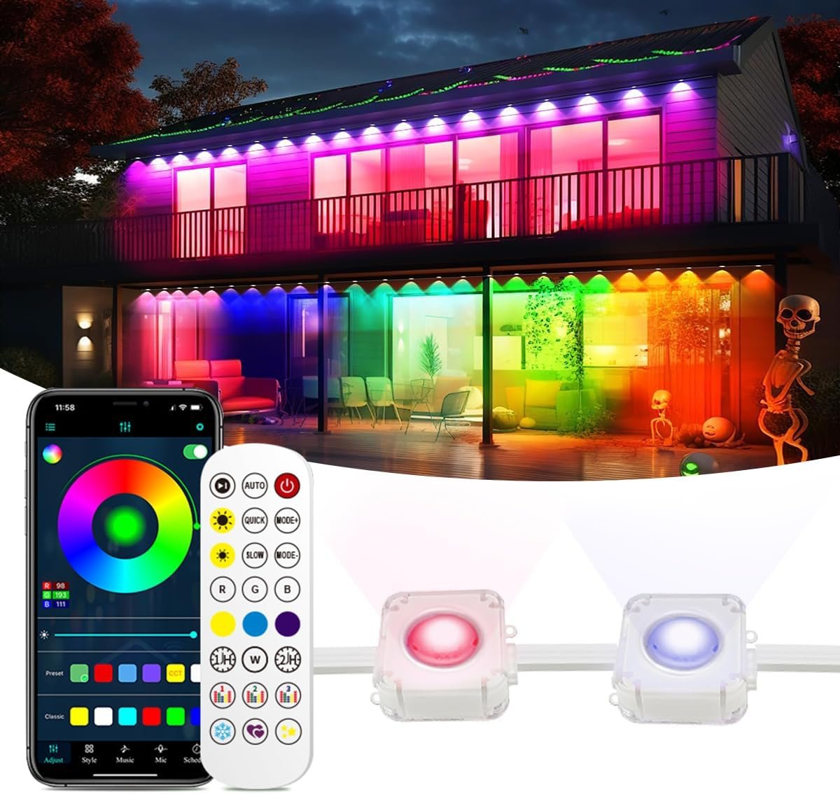 Festive RGBIC Permanent Lighting: The permanent outdoor lights offer 75 different scene modes and allow you to choose from 16 million colors, provide a wide range of options for decorating your house for gatherings, holidays, Halloween, and Christmas. It is energy-efficient, adds to the aesthetic of your home, and is designed to last for years to come.