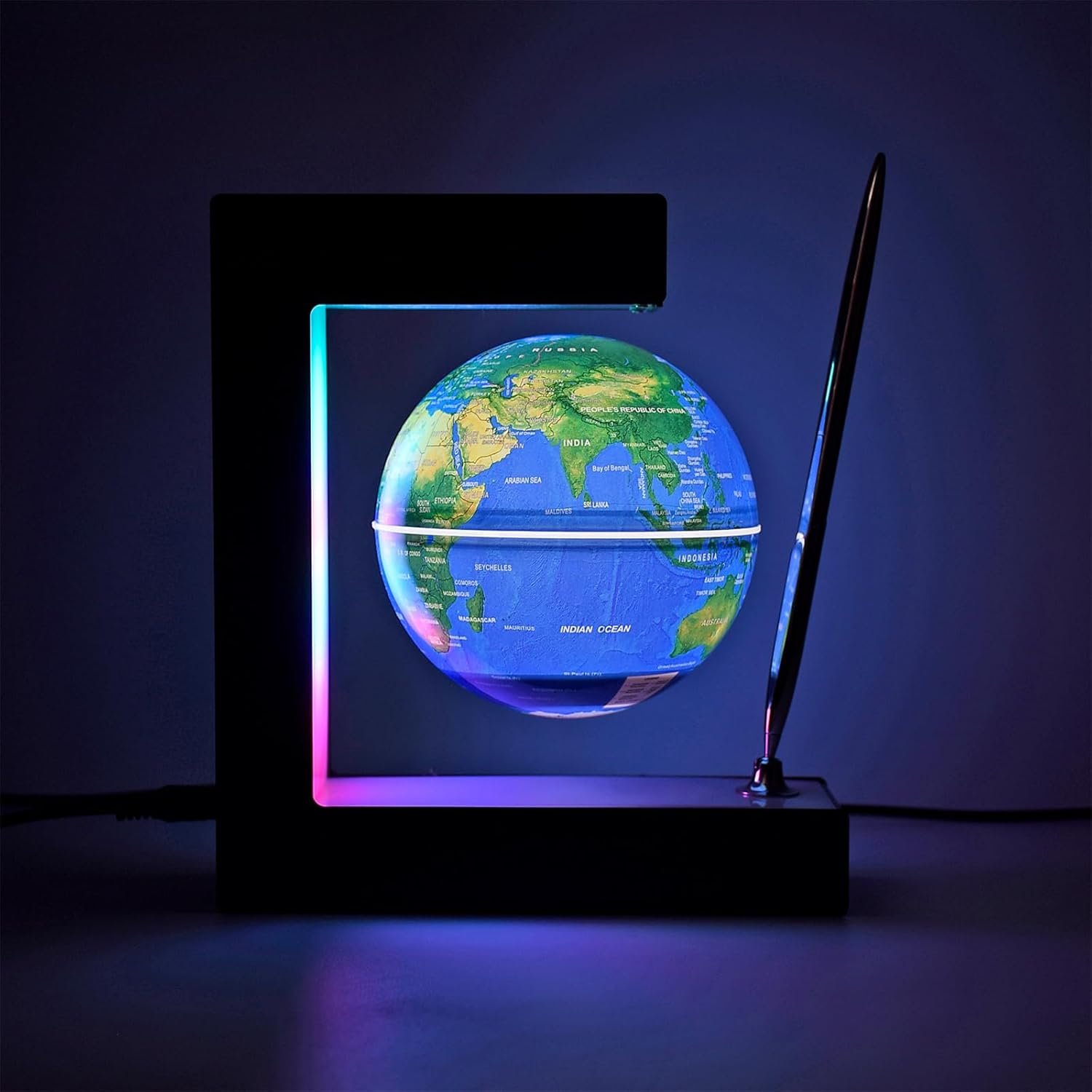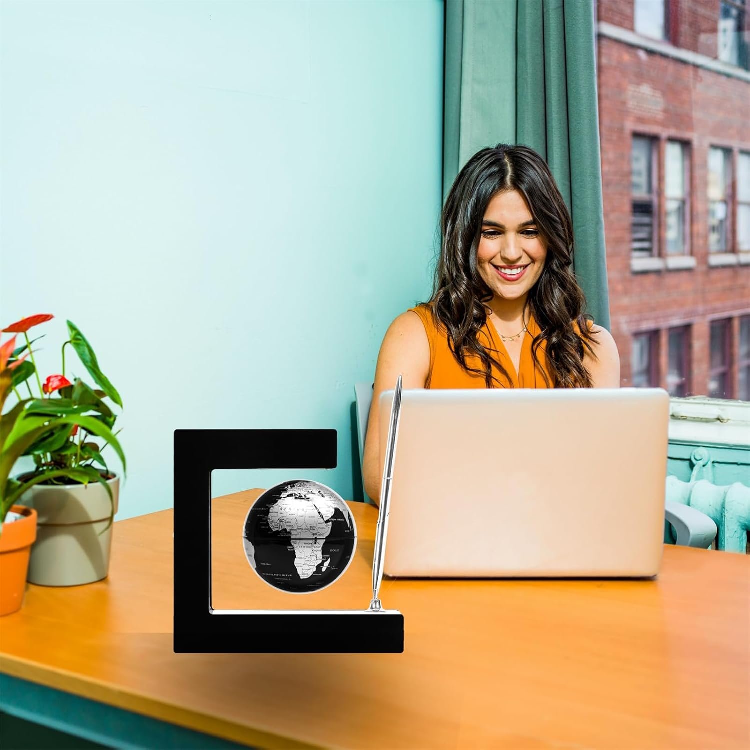 Built-in Pen Holder for Practicality and Observation: The base of the globe includes a pen holder, combining practicality with observation. This ingenious design ensures that you can conveniently jot down notes or ideas while enjoying the suspended globe’s mesmerizing presence on your desk.