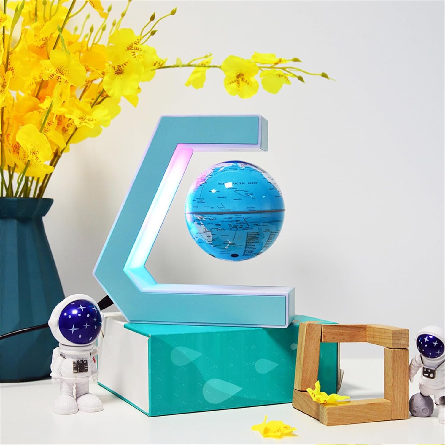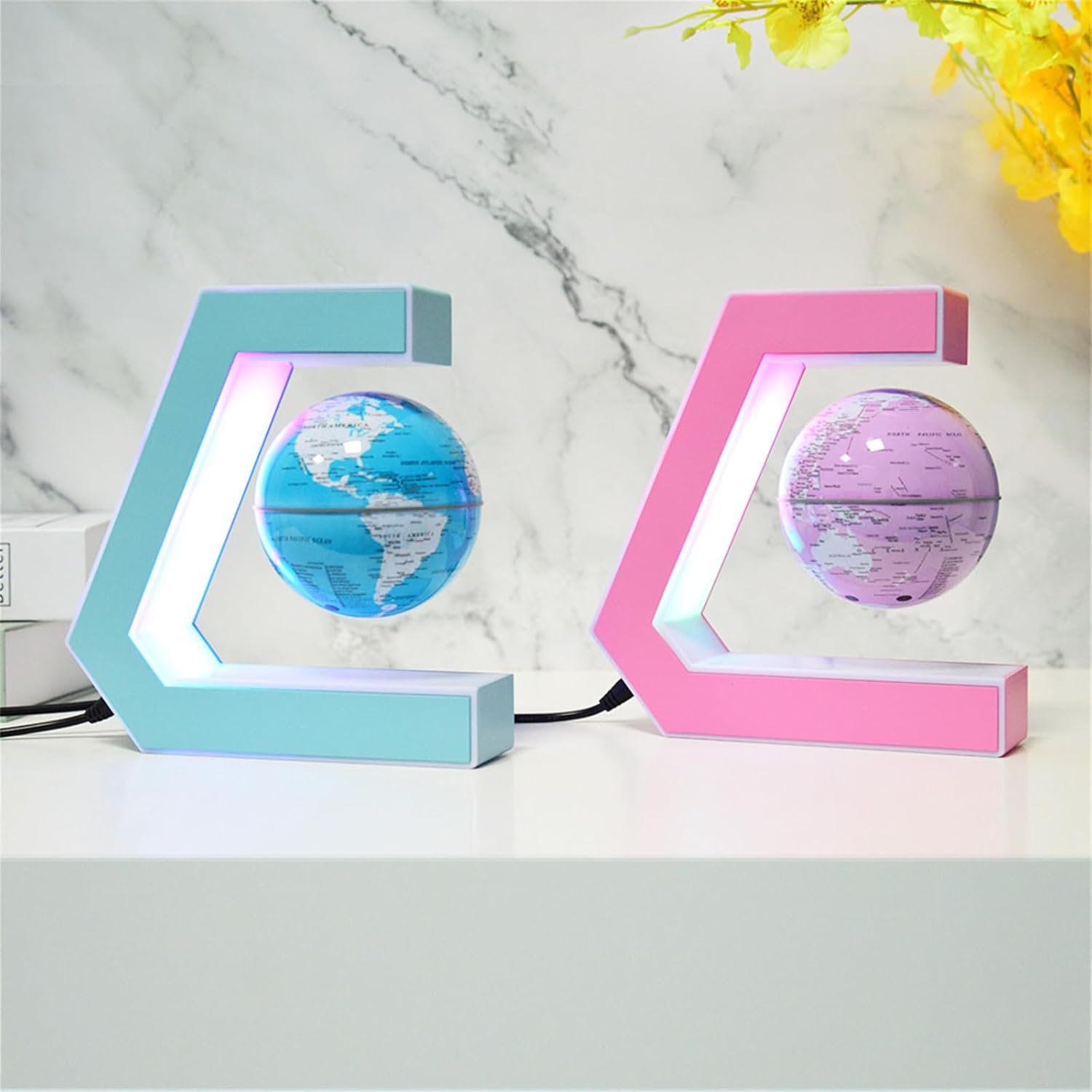 Colorful Choices: It offers two color options, blue and pink, and is equipped with built-in LED lights. This feature not only allows it to serve as a miniature model of the Earth at night but also functions as a small night light, adding a warm atmosphere to the environment.
