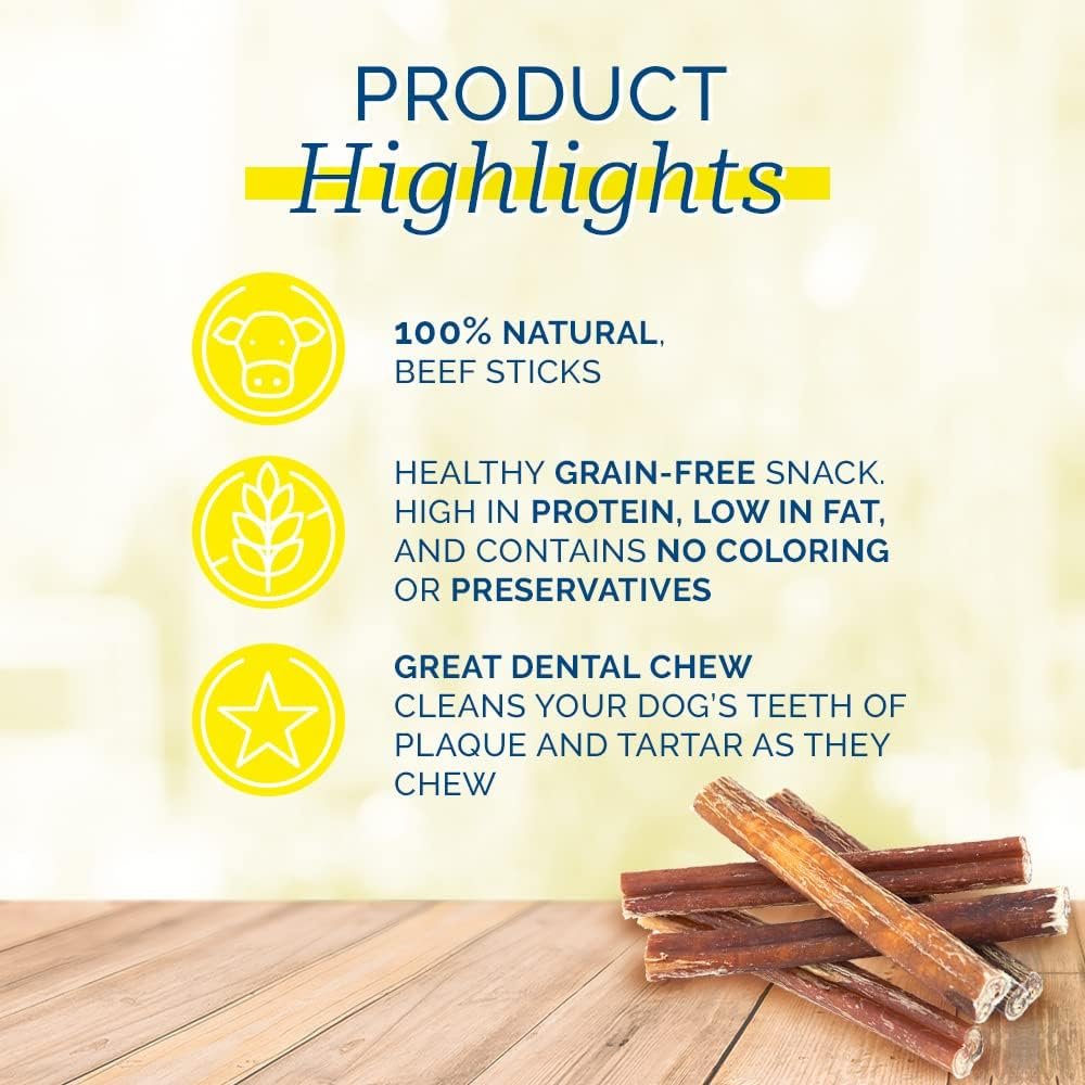 10ct. 6″ Dehydrated Bully Sticks. 100% Natural Single Ingredient Bull Pizzle. No Additives, Preservatives or Coloring. High in Protein. Grain Free.