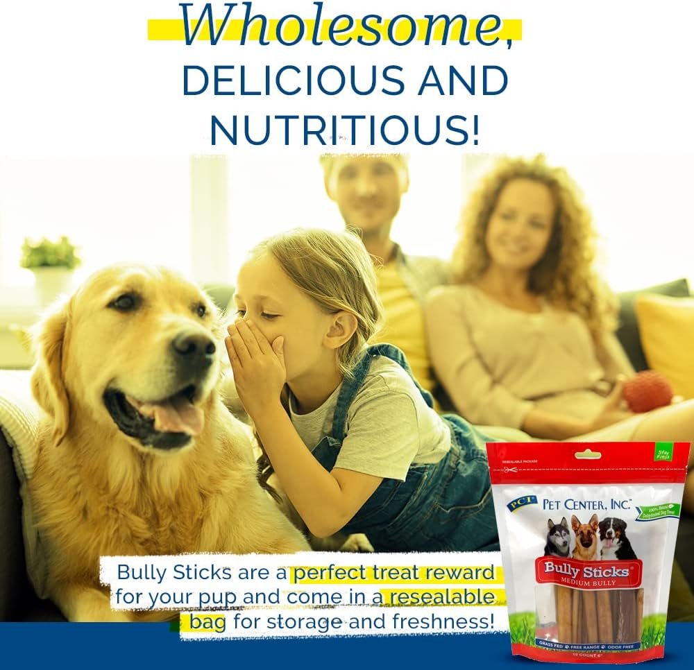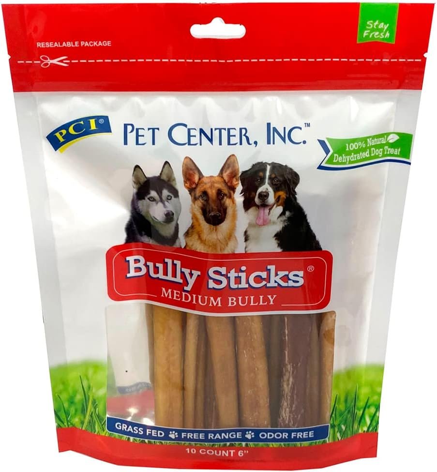 10 medium size 6” Bully Sticks in a resealable bag for easy storage and freshness