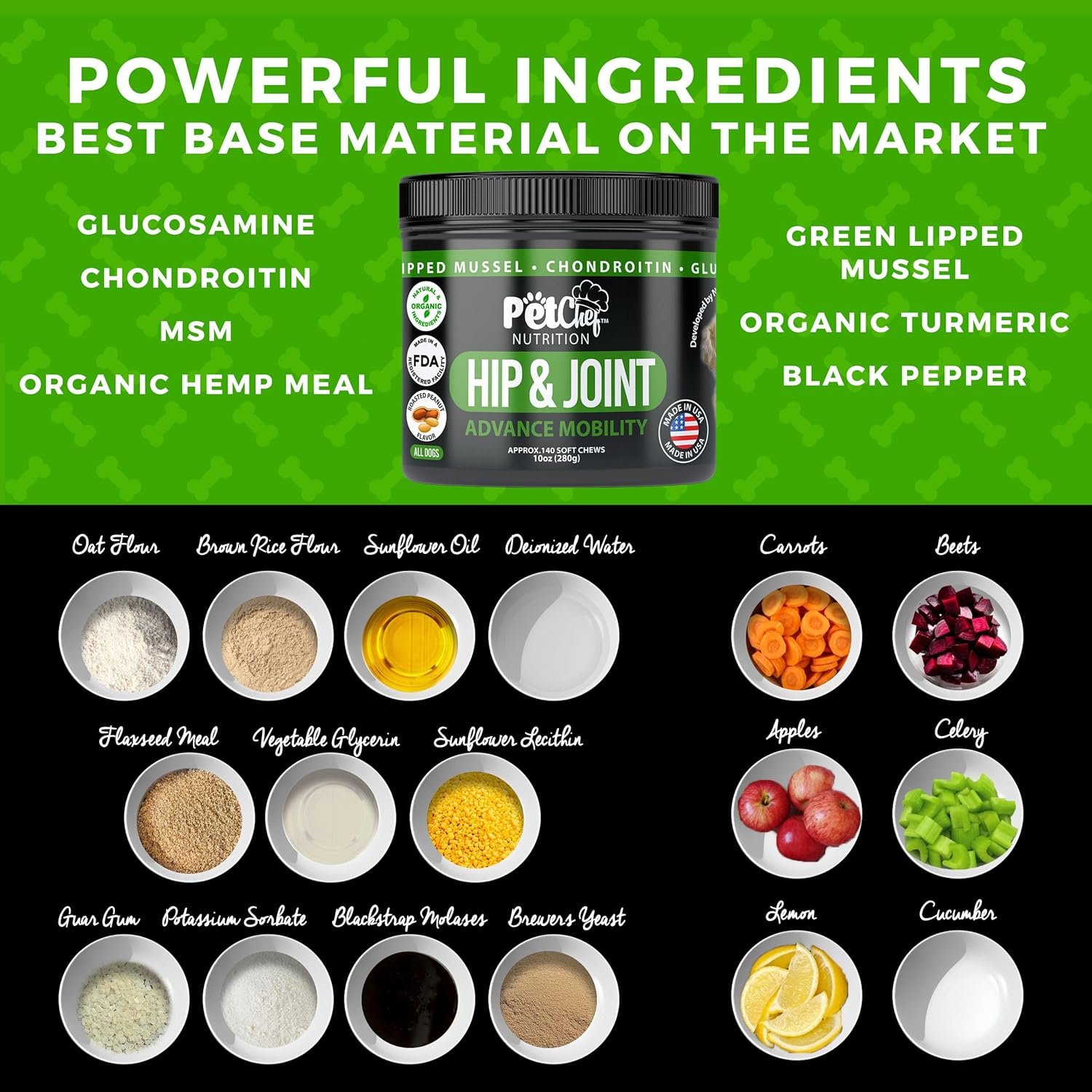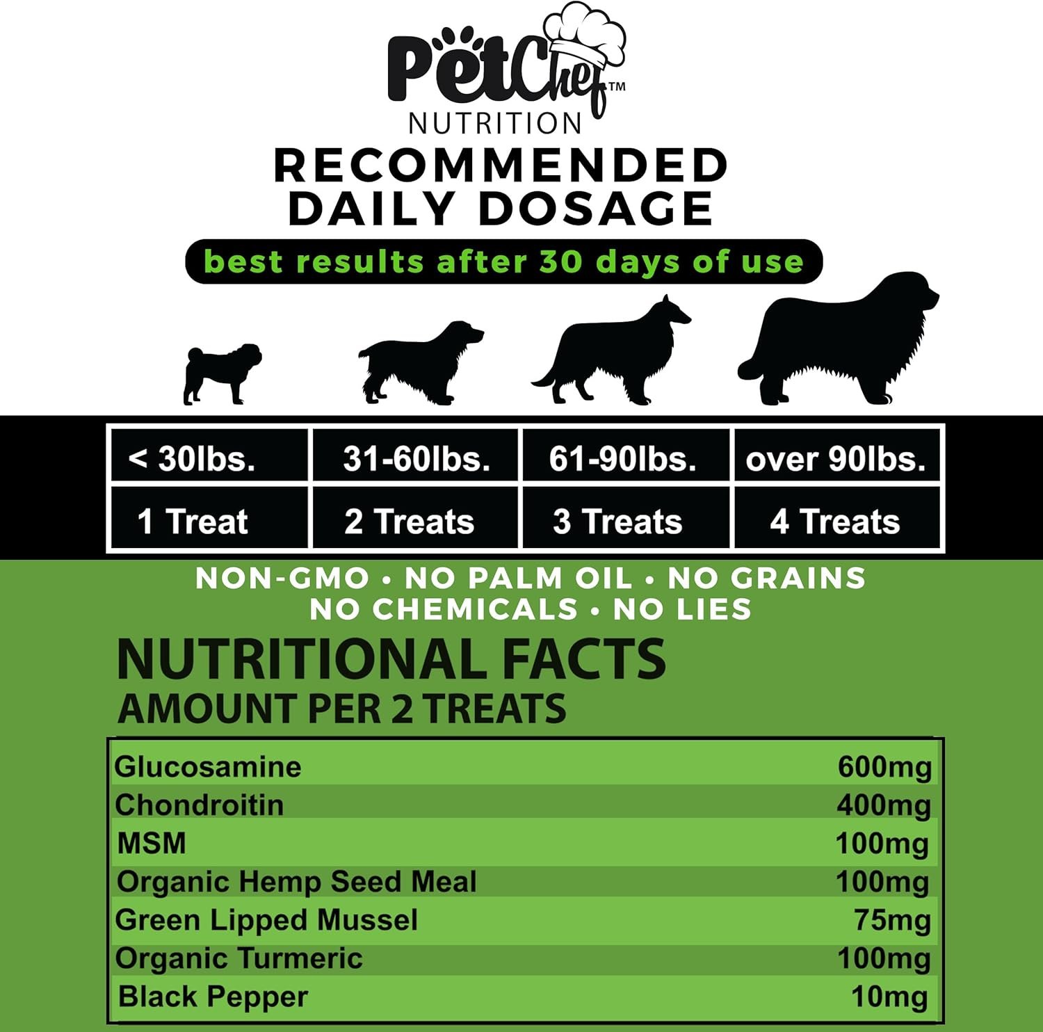 Benefit – Easy to Administer and Delicious Taste – No more struggling with pills and tablets; Pet Chef Dog Hip Joint Supplement comes in easy-to-administer chews that dogs love. These tasty treats make it simple to provide your dog with the necessary joint support, ensuring consistent and effective supplementation for their daily comfort and long-term joint health.
