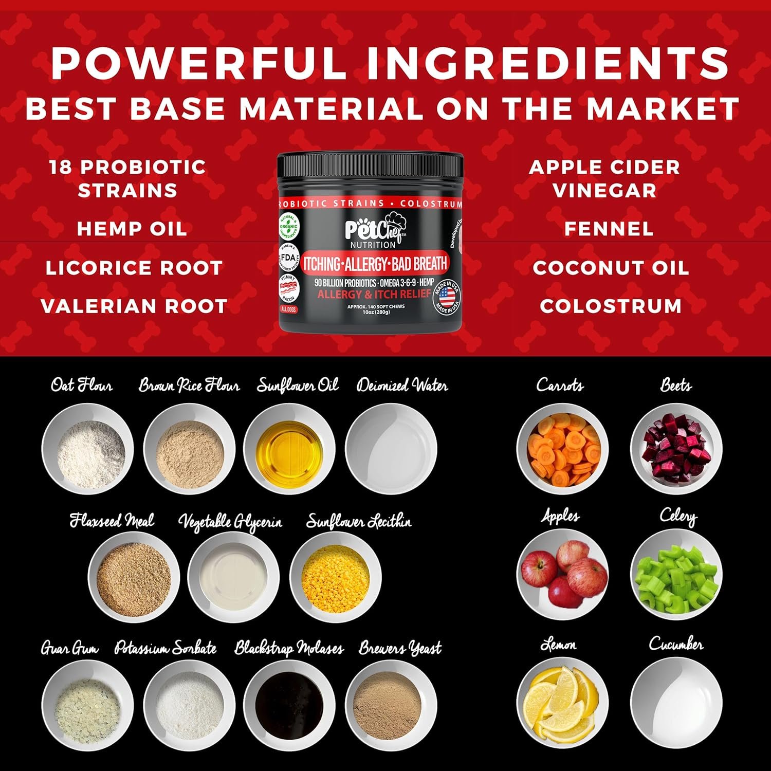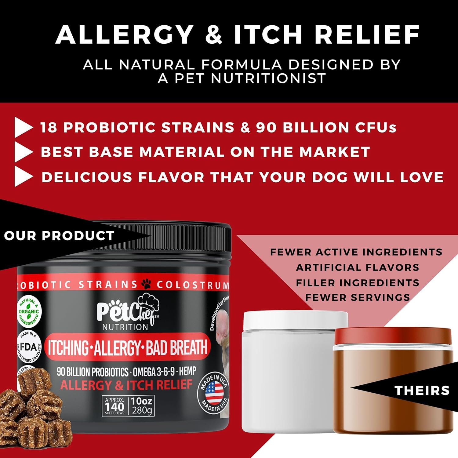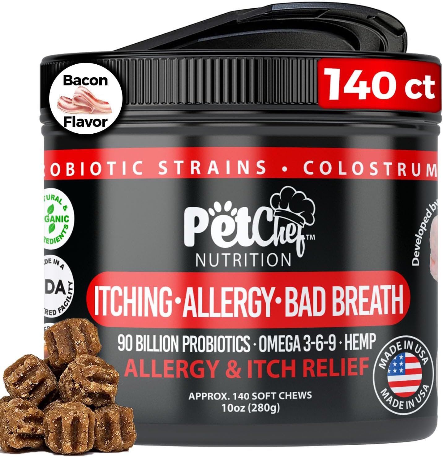 Pet Chef Allergy Defender – Natural Dog Allergy Relief Chews – Effective Medicine for All Dog Allergies, Environment & Household Irritant Prevention – Safe & Strong Dog Allergy Supplements for Dogs
