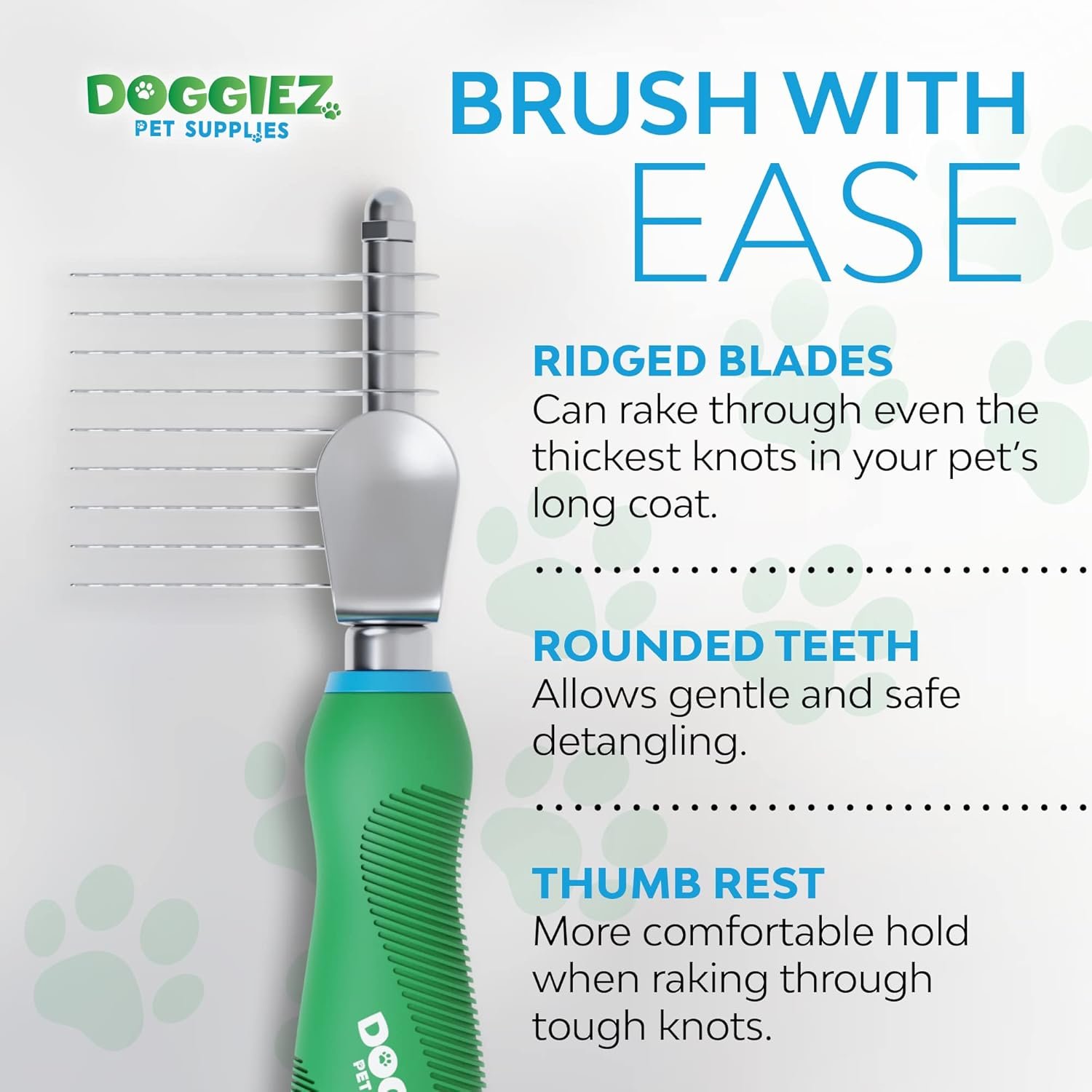 BEST DEMATTING RAKE – Quickly and easily eliminate matted fur with our dematting comb for dogs and cats. The stainless steel blades cut through thick matted fur, tangles, and knots without scratching your dog or cat. The rigid comb blades act as an undercoat rake to reduce shedding and pet dander.