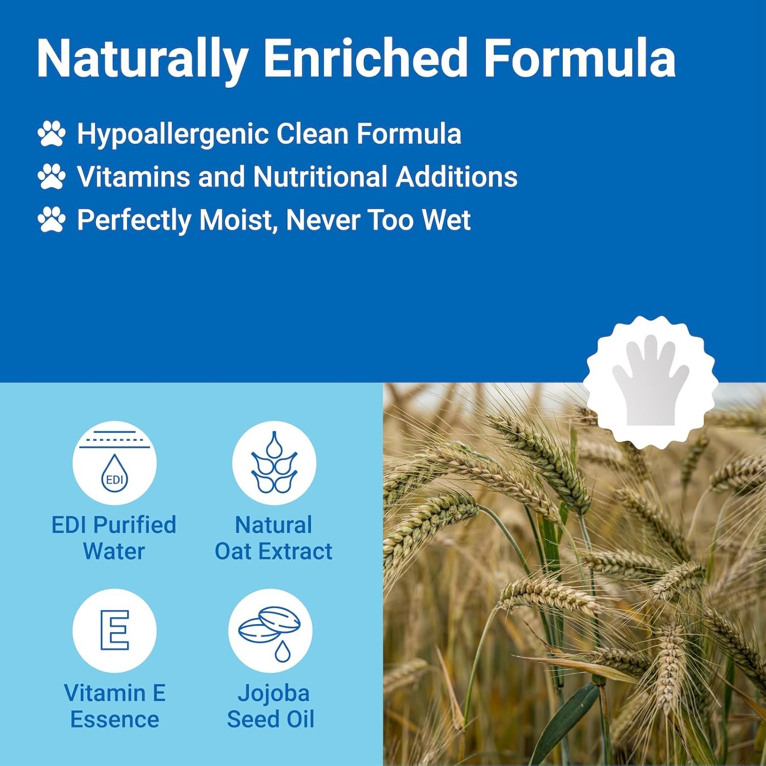 Gentle & Hypoallergenic: Formulated with natural sunshine oat extract, these wipes are designed to be ultra-gentle on your pet’s skin, making them perfect for daily use even on pets with sensitive skin.