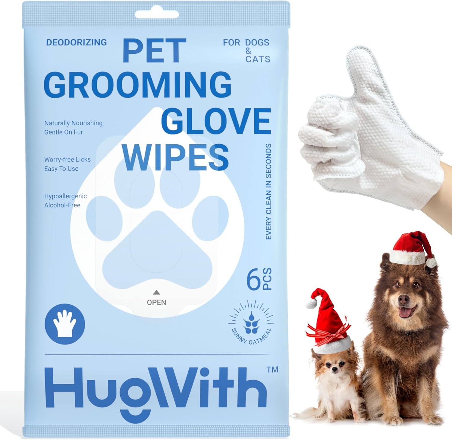 Natural Deodorizing Formula: Infused with natural deodorizing agents, HugWith wipes eliminate odors while leaving your pet’s coat refreshed and smelling great, perfect for use between baths.