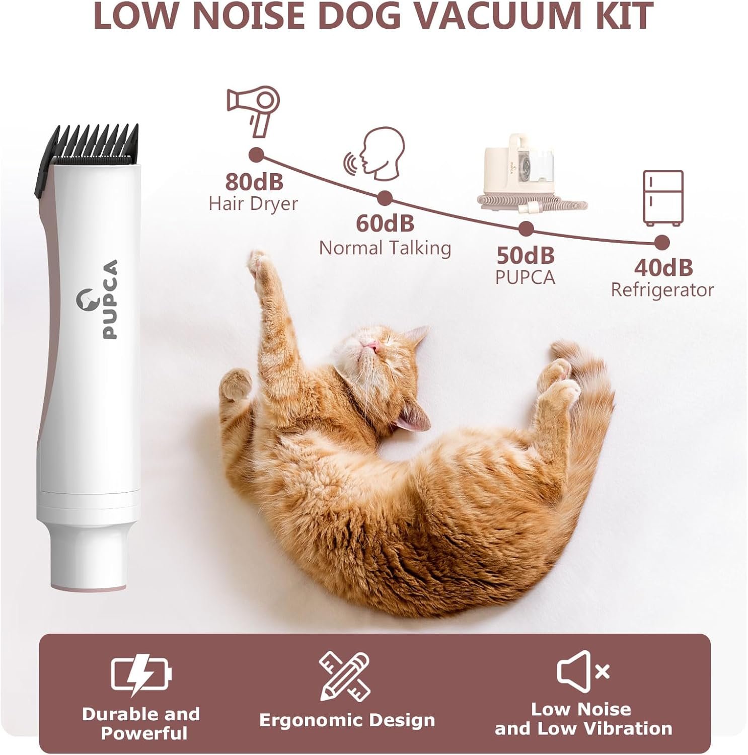 [Cost-Effective Grooming]: Save a lot of time and money by avoiding trips to the pet groomer. The PUPCA pet vacuum groomer kit collects 99% of pet hair in a detachable vacuum container, keeping your pets and home clean and tidy effortlessly. Say goodbye to the traditional, laborious grooming kits.