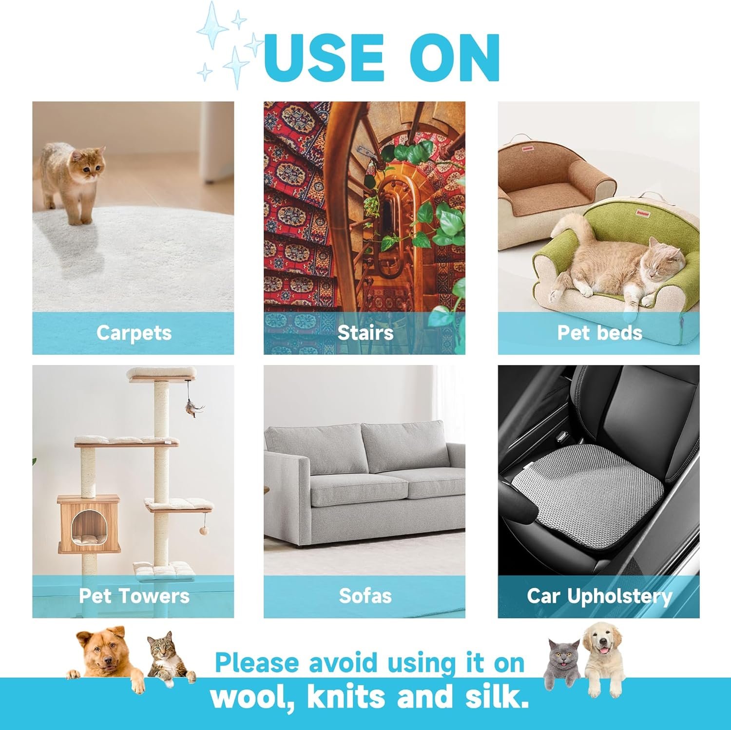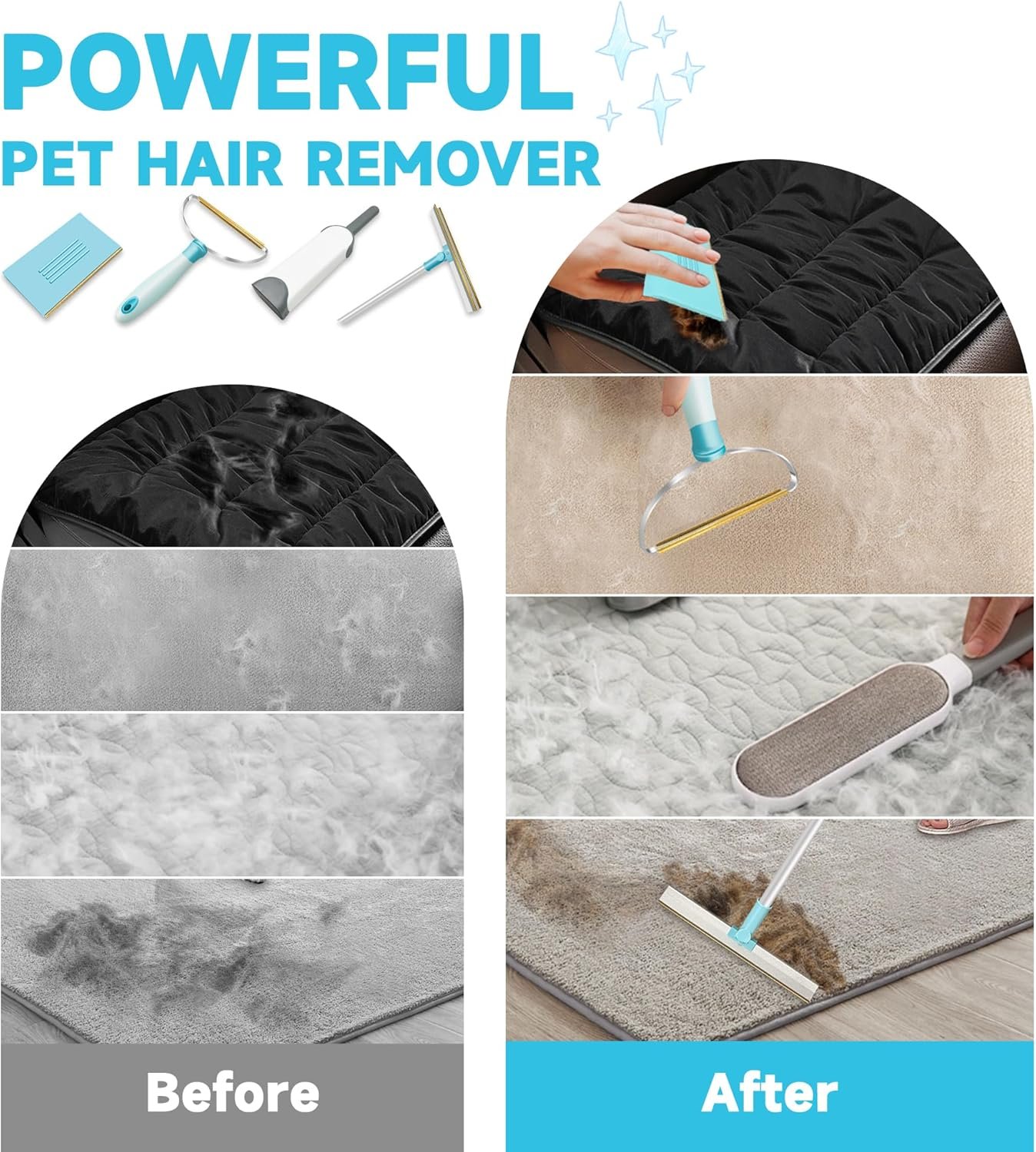 【Comprehensive Pet Hair Removal Tool】The cat hair remover set can save your time and energy. Use the Pro as a carpet scraper to scrape pet hair, the Air as a pet hair remover for couch, the Mini as a pet hair remover for car & hard-to-reach corners, the Xtra as the clothes scraper for pet hair.