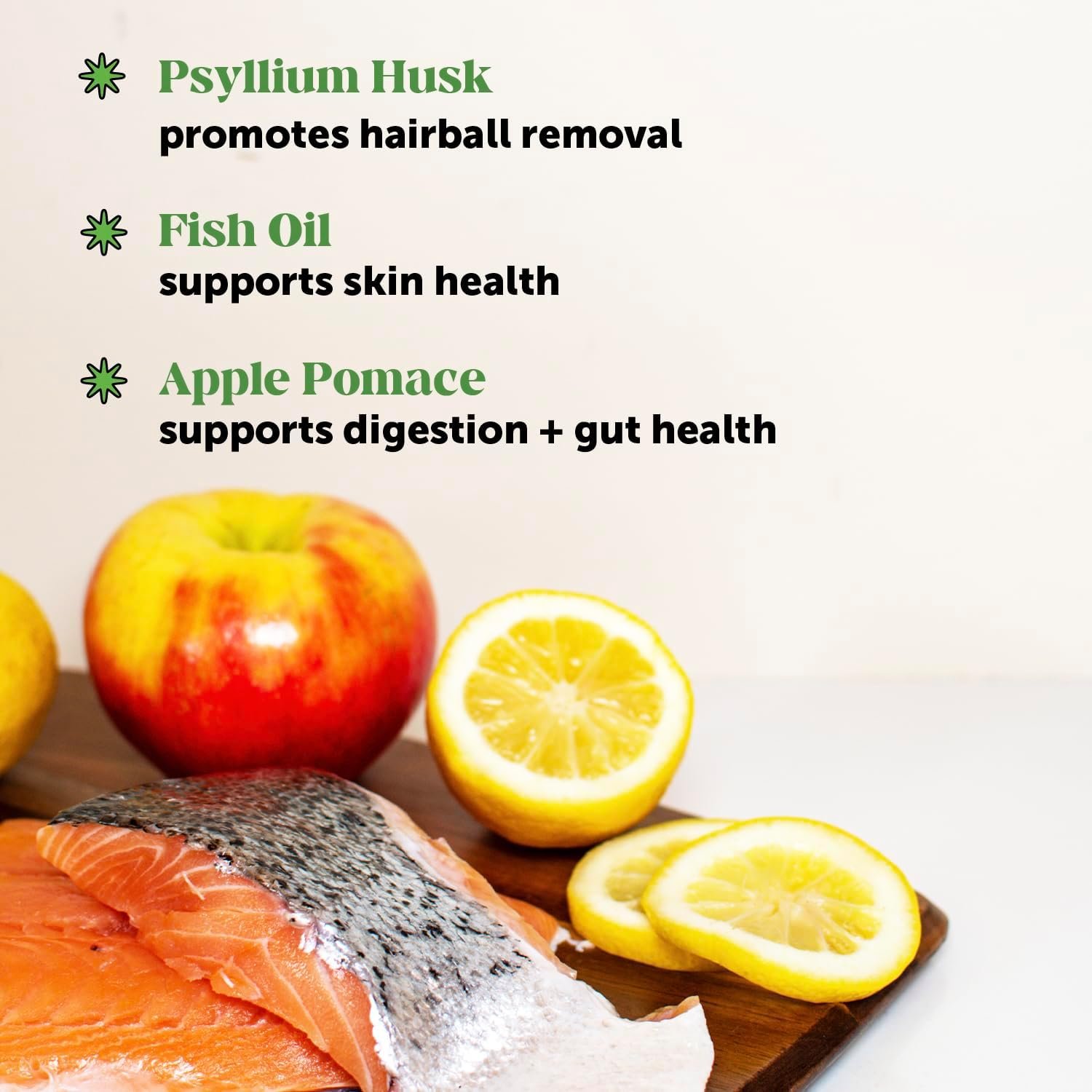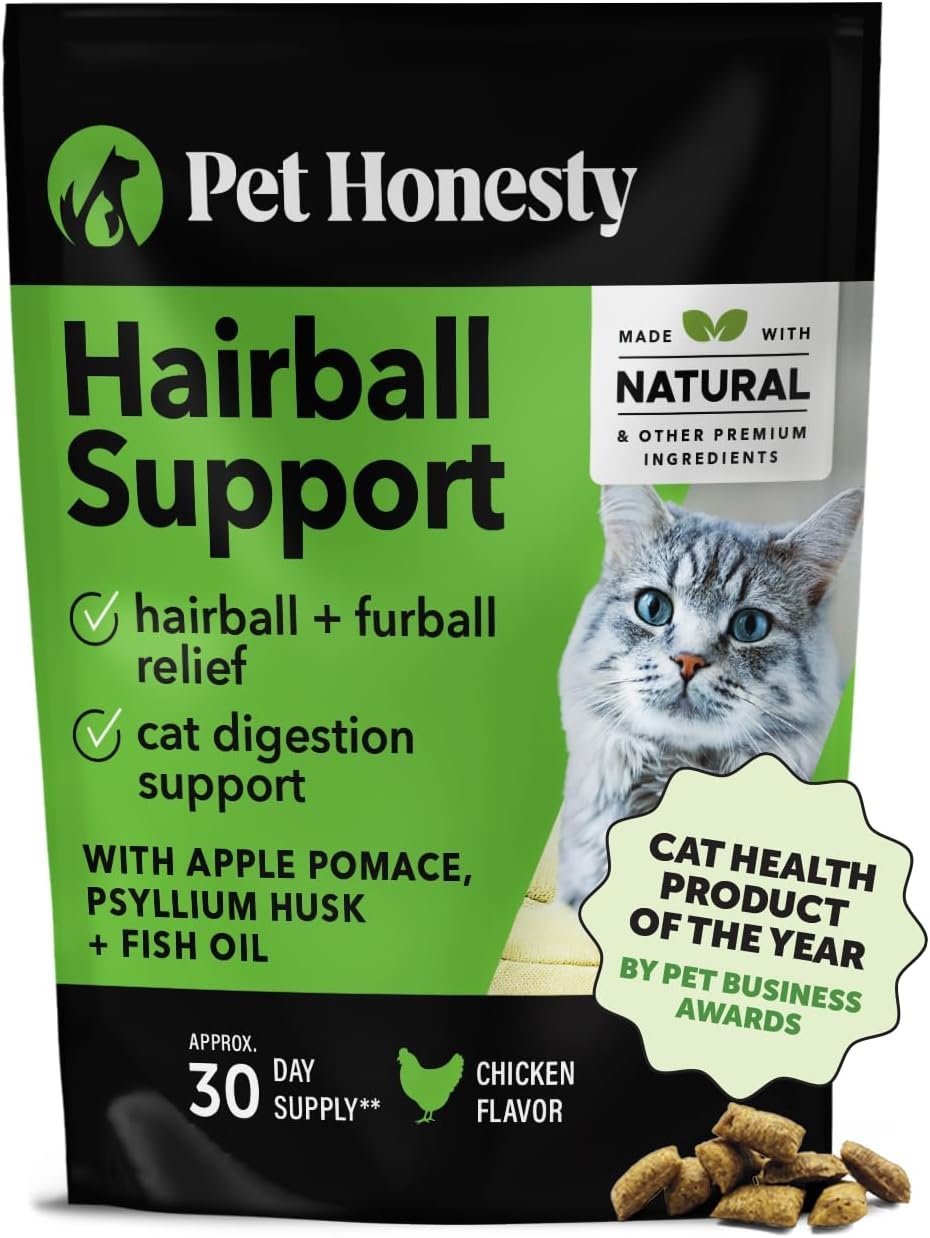 Made with natural & premium ingredients like apple pomace, zinc, and psyllium husk: Hairball Support chews are filled with health-supporting ingredients you can trust. Apple pomace helps maintain a healthy digestive system. Zinc helps maintain skin health, supports the immune system and cognition, and supports other key benefits! Psyllium husk is frequently used in hairball and digestion products to support bowel function and health.