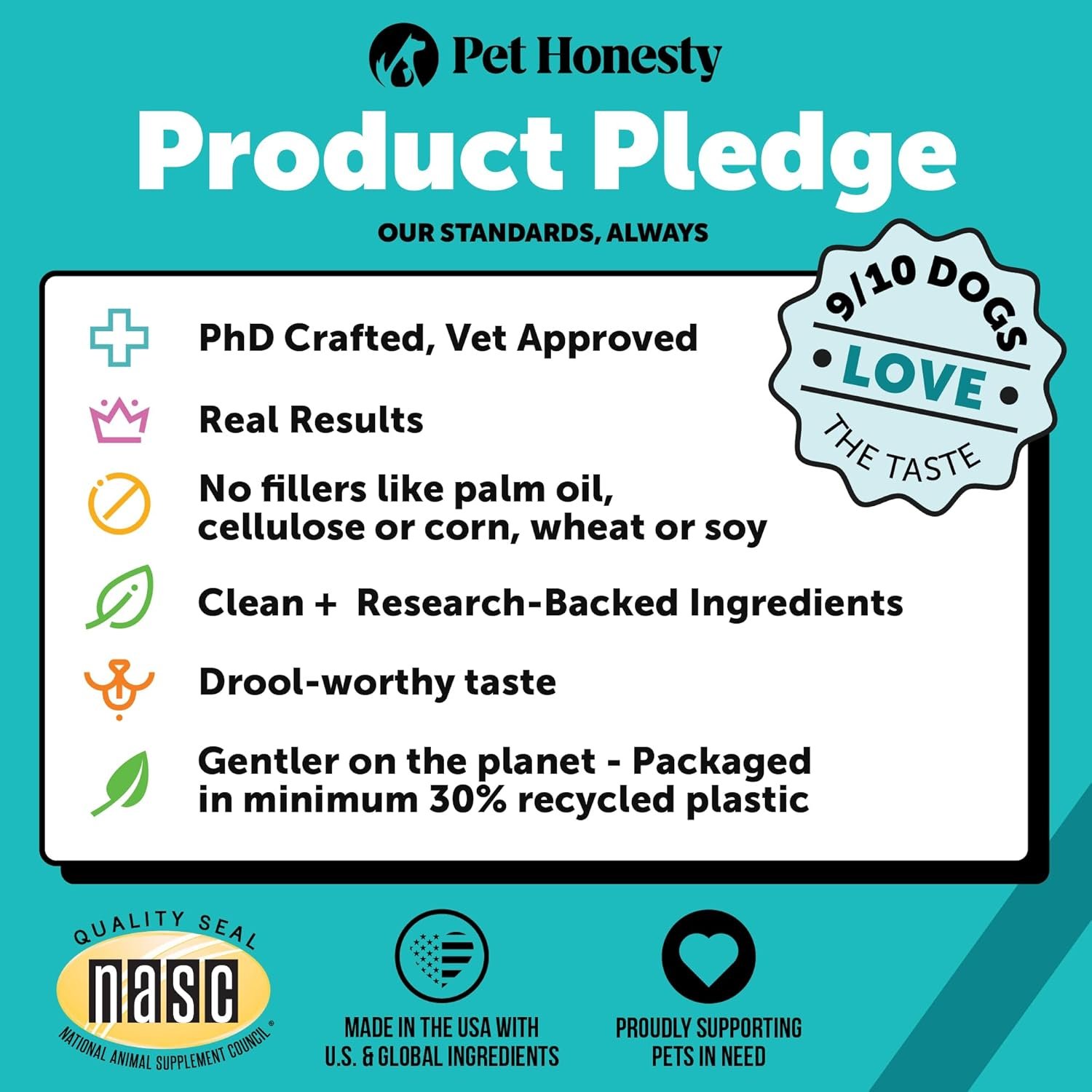 Pet Honesty pledge: A taste your pet will love & results you can trust. Made with the most effective natural + other premium ingredients. Formulated without corn, wheat, or soy. No artificial preservatives, colors, or flavors.