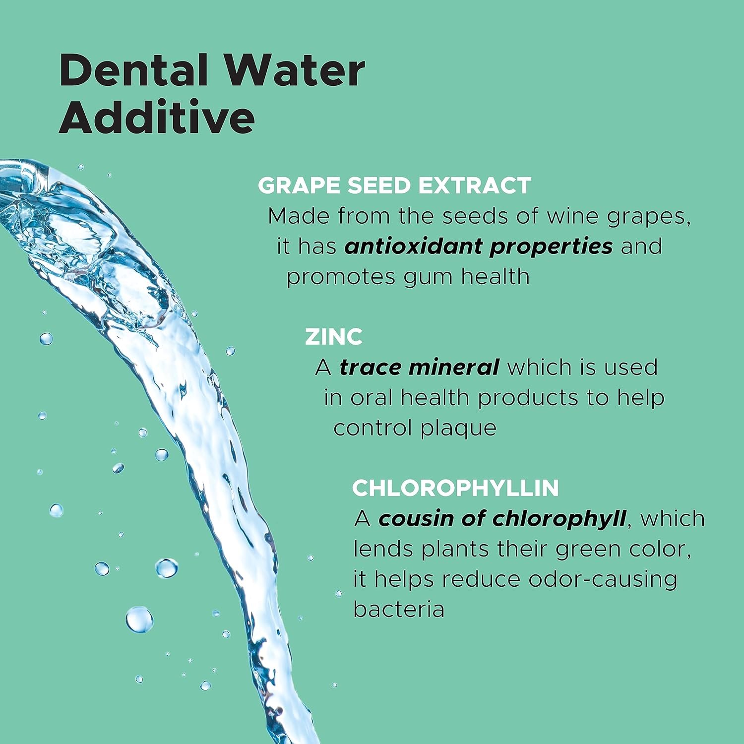 Made With Natural Ingredients Like Enzymes, Grape Seed, Cinnamon And Zinc: This Oral Hygiene water additive contains no toxic chemicals like many other leading brands and is many with natural ingredients that help reduce bad, odor-causing bacteria in the mouth and support healthy inflammatory pathways to keep gums and teeth healthy.