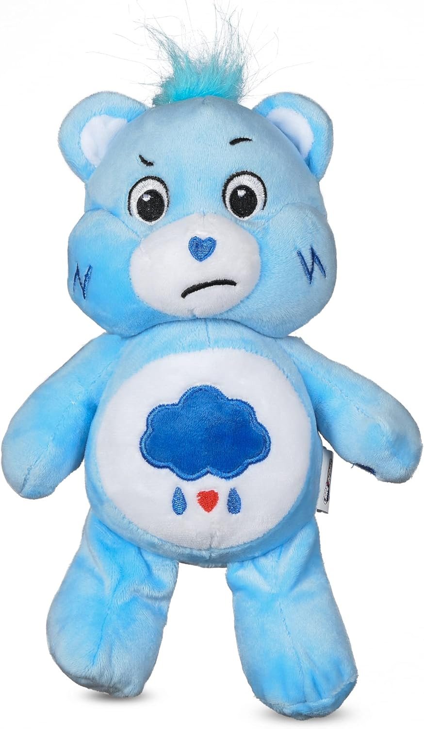 Unlock – or in this case, unleash – the magic of Care Bears with collectible Care Bears for Pets! Care Bears collectibles have been cuddled by fans for 40 years, and now your pet can join in the snuggle-fest with their own Care Bears pet plush toys! Our pups are always there for us, and now we can let them “bear” their hearts to us, too. The unique belly badges of the Care Bears characters share messages of paws-itivity with you and your pets, inspiring everyone from human to fur-baby embrace all the feels. After all, even sadness feels better when we’re together! This toy for dogs is inspired by Grumpy Bear, one of the ten original Care Bears debuted in 1982. Grumpy Bear is the resident worrywart of the Care Bears clan, often feeling down, sad, or concerned. Sometimes he rains on the parade, as suggested by his storm cloud belly badge. His unique personality among the other cheerful bears helps him relate to those who are cynical – or just plain having a bad day. Even the grouchiest of pups will appreciate a good cuddle with a Grumpy Bear pet plush. This plush toy is 9 inches tall, making it a small sized plush set that is perfect for snuggling, tossing, and light chewing. This plush dog chew toy is made from soft fabric and contains an internal squeaker and crinkle texture ears that will cheer up a sad pup. The pet squeaker toy also features pet safe plush features, with no hard parts or small external pieces as choking hazards: all design details are embroidered or screen printed. Our dog toy is officially licensed by Care Bears, so it would be perfect for fans of all ages. As with all dog toys, please supervise your pet when they play with this toy.