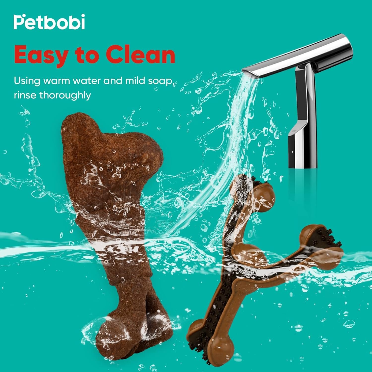 【Conveniently Washable】- Petbobi durable dog chew bone long lasting toy feature a waterproof design, allowing them to be easily cleaned with water. You need not worry about water infiltration or damage. Simply use water for a thorough cleaning. Made with high-quality materials, the durable dog chew toys are durable and built to last. Even after multiple washes, they will maintain their excellent quality and appearance.