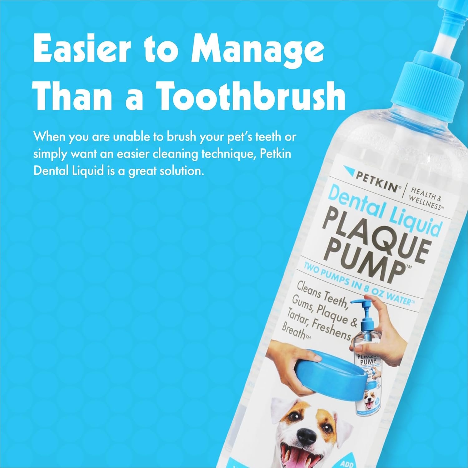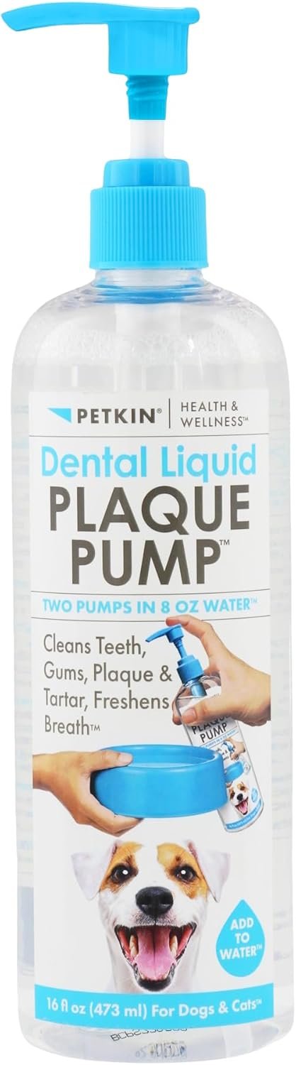 Petkin Dental Liquid For Dogs & Cats – Easy to use water additive cleans teeth, gums, plaque and tartar while freshening your pet’s breath. Brightens teeth with baking soda. Ideal for at home or travel. Includes 1 – 16 Fl Oz bottle