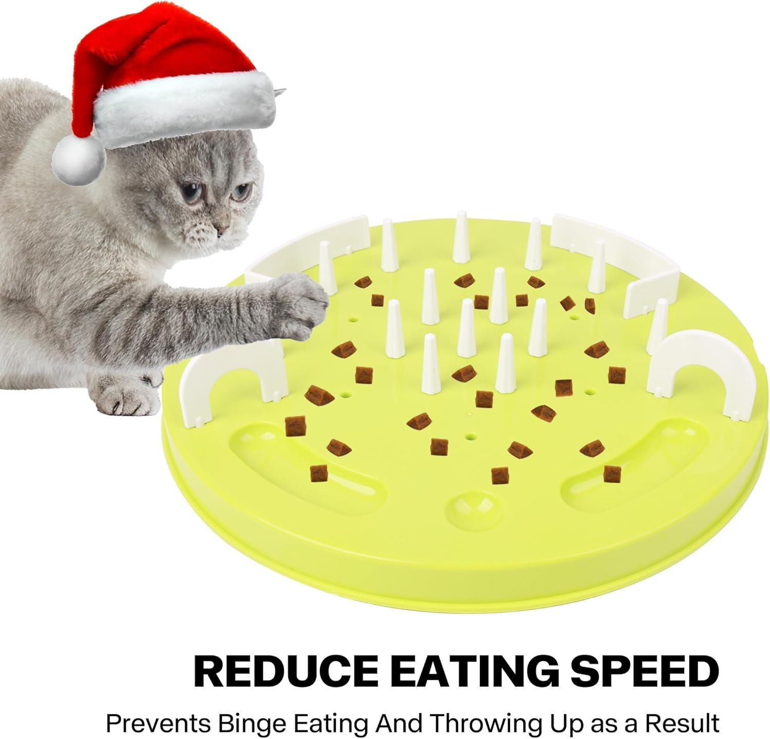 Slow Feeder for Healthier Digestion: The maze like design of the cat treat dispenser encourages cat to work for their food,making mealtime more engaging and satisfying,helps slow down cat’s feeding speed,promotes healthier digestion by preventing overeating