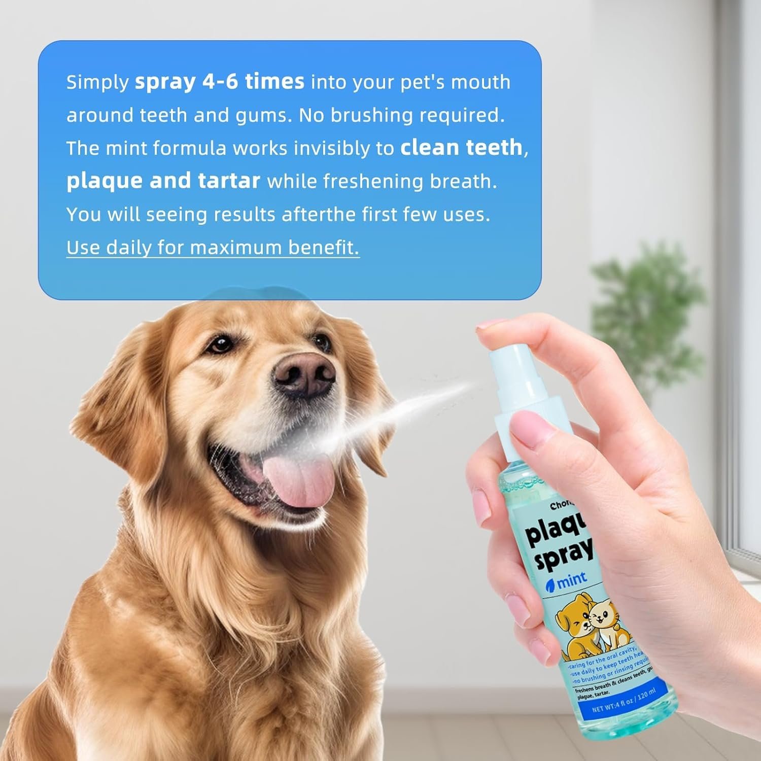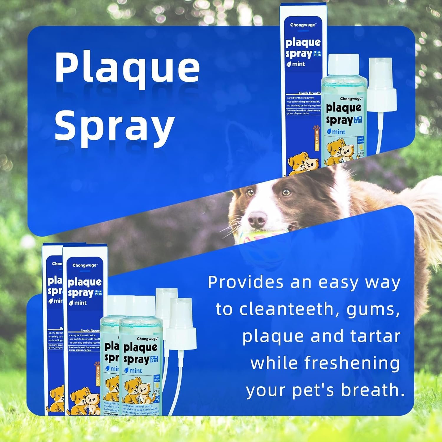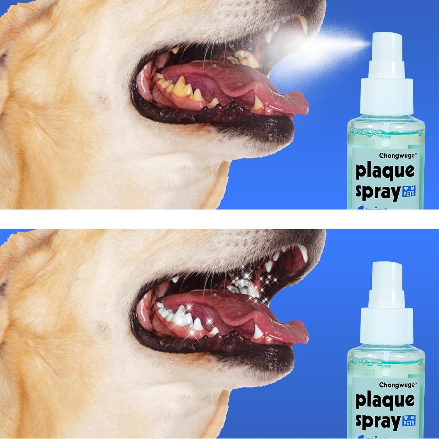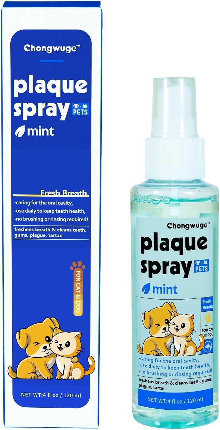 Chongwuge Pets Dental Spary for Dogs & Cats, Freshens Breath, Cleaning Plaque and Tartar, Safe and Edible, Easy Use, 4 fl oz