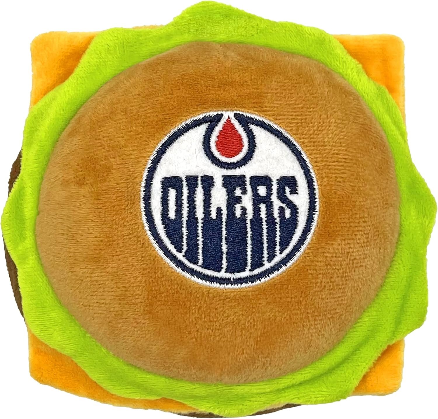 BETTER DOG TOY!!! The new NHL DOG SQUEAKY & FASHIONABLE PLUSH TOY: A GREAT, CUTE & DURABLE PET TOY! The Embroidered Team Name/Logo & built-in SQUEAKER inside the NHL Cheese Burger TOY will add many smiles in the crowd! Just click ADD TO CART now!
