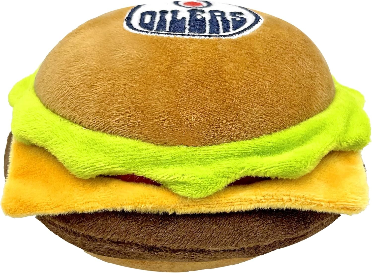 The NEW NHL CHEESE HAMBURGER STADIUM SNAX SQUEAKY PLUSH TOY for DOGS & CATS with your favorite NHL Hockey TEAM NAME & LOGO licensed by the SPORTS LEAGUE with inner SQUEAKER is finally available!