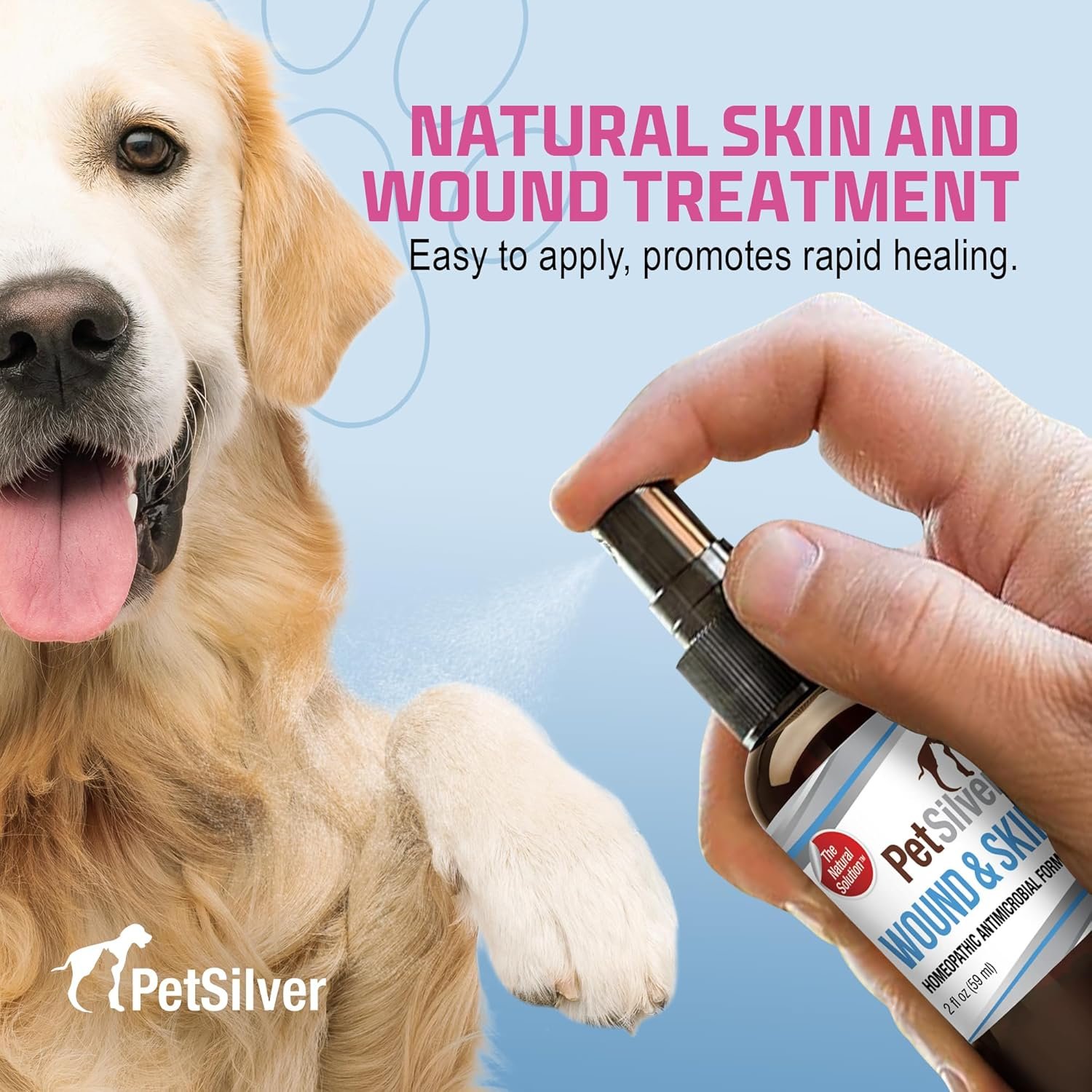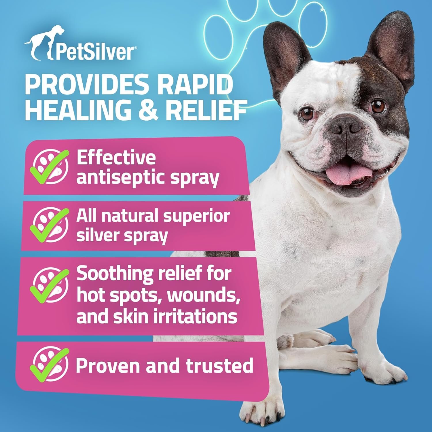 SOOTHING RELIEF FOR PETS: PetSilver Wound & Skin Spray provides relief from hot spots, wounds, rashes, burns, and skin irritations for dogs and cats. It works as a hot spot spray for dogs and a wound care solution for pets, promoting natural health for your furry friends. Safe for use on paws, face, ears, nose, and sensitive skin areas, this spray effectively soothes itchy lacerations. Thoroughly saturate the affected area with the sprayer for optimal results.