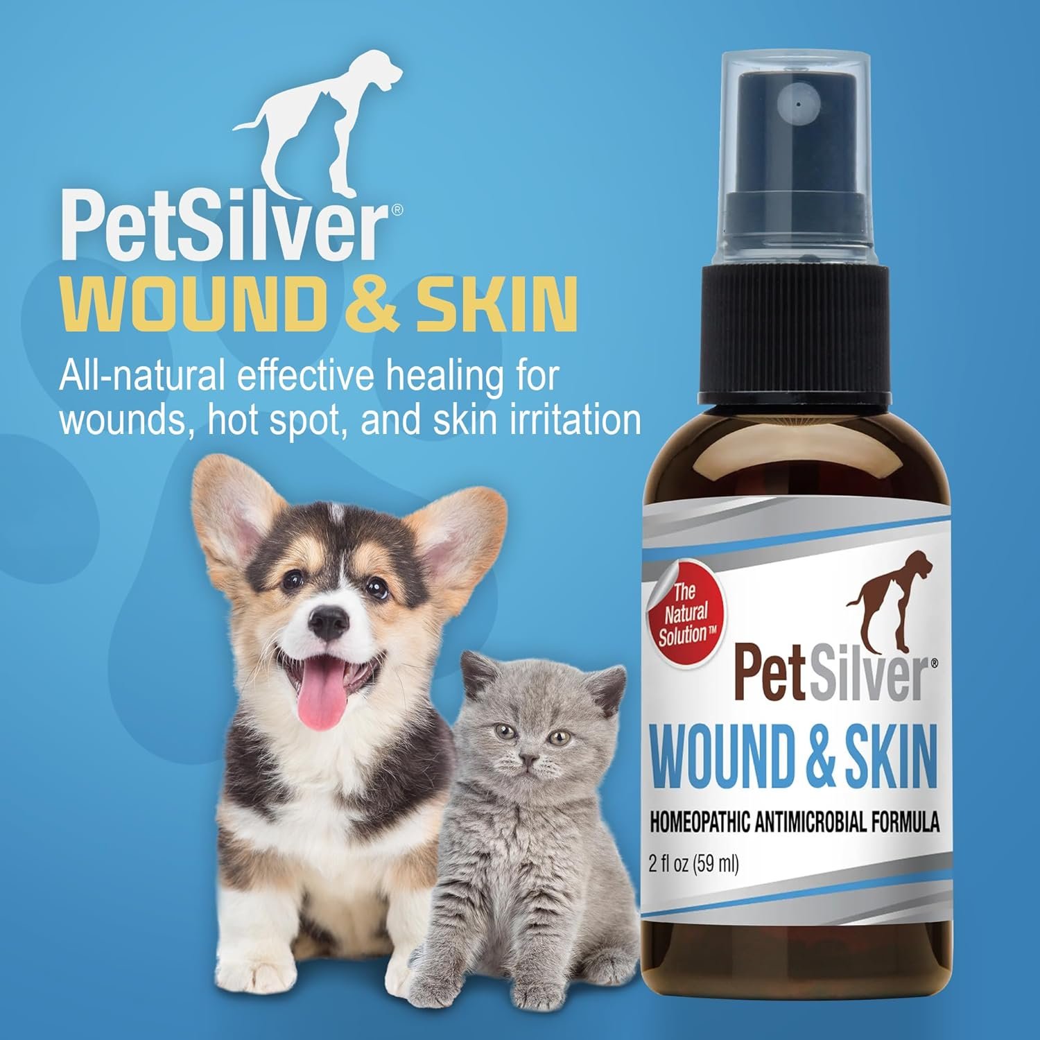 PetSilver Wound & Skin Spray – Chelated Silver, Superior to Colloidal Silver – Dog Wound Spray, Hot Spot, Allergy Relief for Dogs, Itch Spray for Cats – Natural Skin Soother – Made in USA – 2 fl oz