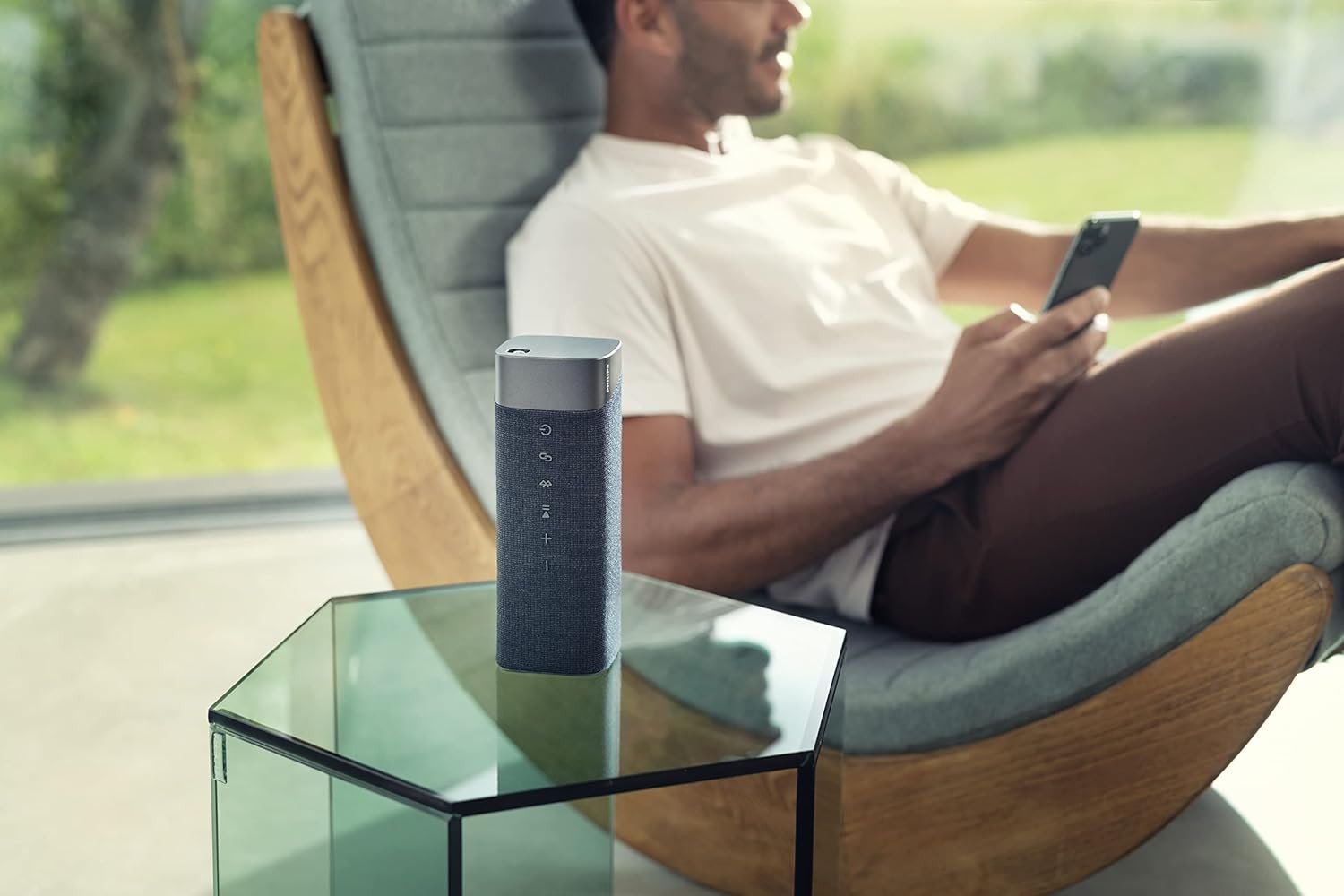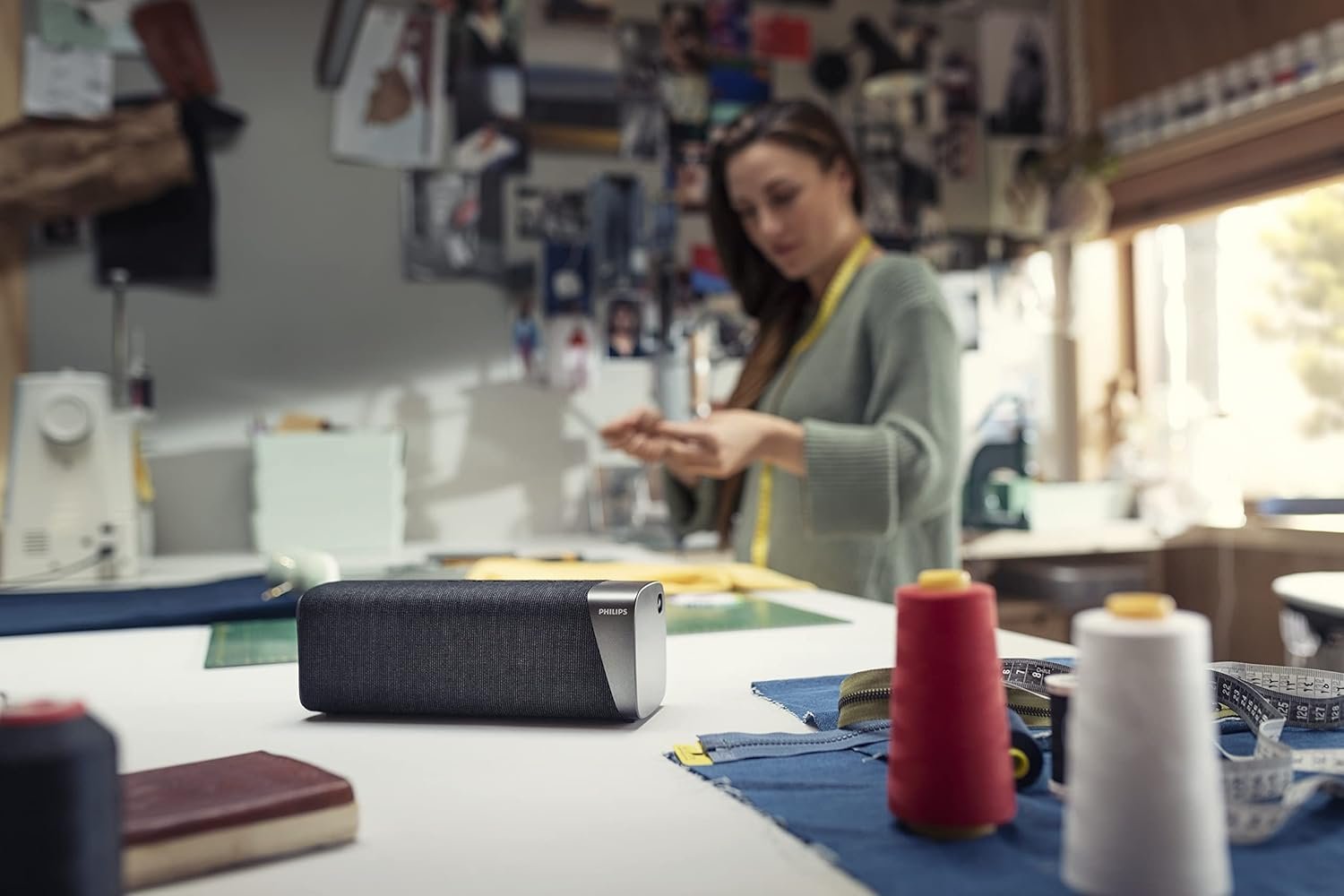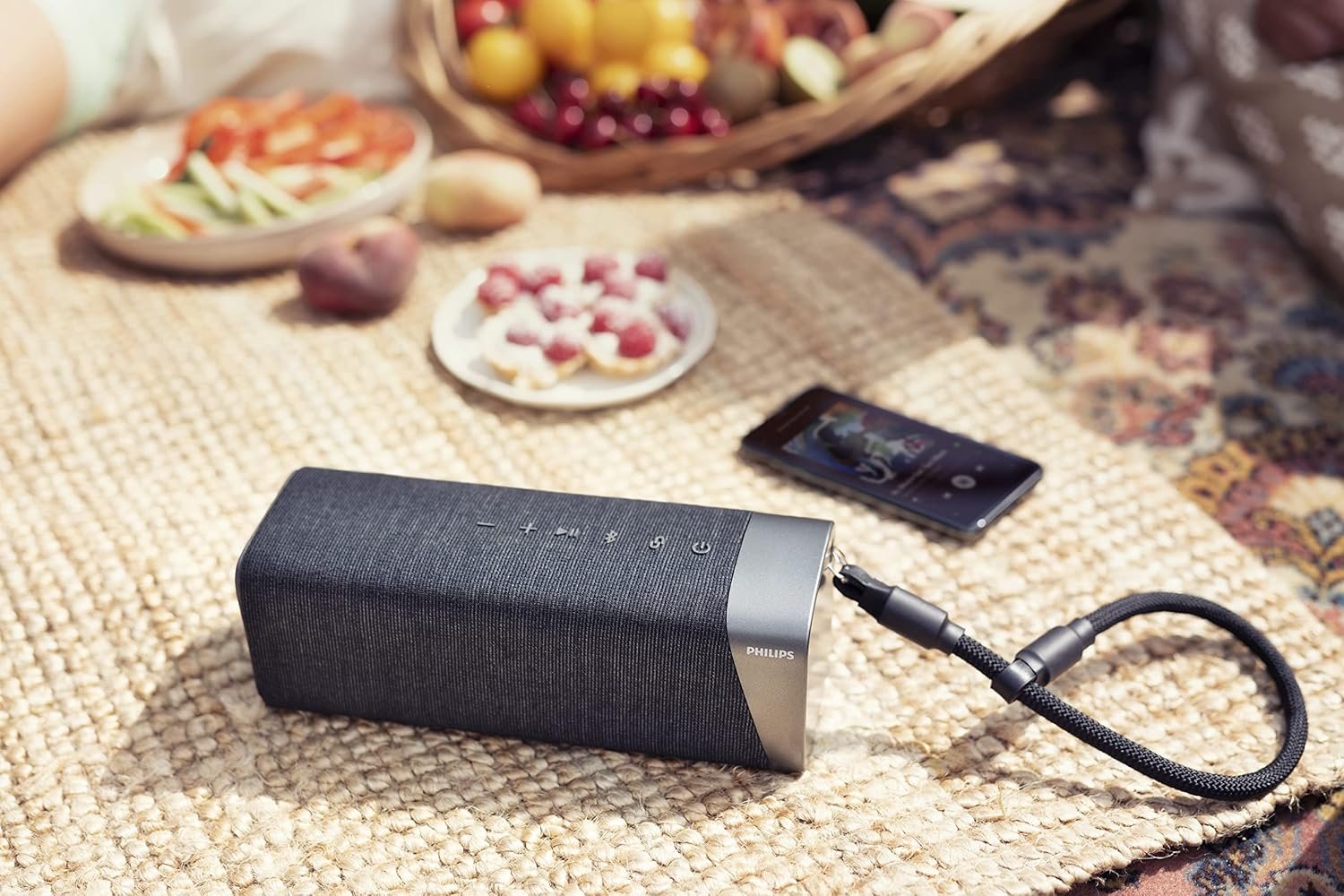 The Philips S5505 Wireless Speaker is the perfect companion for music lovers everywhere. It’s portable yet powerful, with 3.15” full range driver and a passive radiator that fills the room with deep, punchy bass. You can attach a carrying strap and take it with you wherever you go. The speaker is covered with a premium speaker fabric created by high-end manufacturer Kvadrat, which allows the music to pass through and flow freely all around. Whether you’re doing yoga in the park, hanging out by the pool, or lighting up the dance floor at a party, this Bluetooth speaker will never let you down. It’s built to last with IPX7 rating, so you can pump up your tunes at the beach as well. Its impressive battery life lets you listen to music all day long, and you can increase volume and enjoy stereo sound by pairing it with a twin.