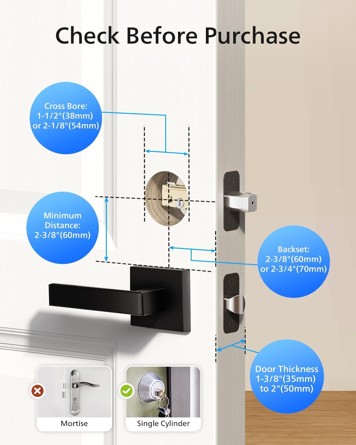 𝐄𝐚𝐬𝐲 𝐈𝐧𝐬𝐭𝐚𝐥𝐥𝐚𝐭𝐢𝐨𝐧:This keyless entry door lock is a breeze to install, requiring nothing more than a screwdriver and a few minutes of your time. It’s designed to fit a wide array of standard door. Please check your door’s compatibility before purchase.