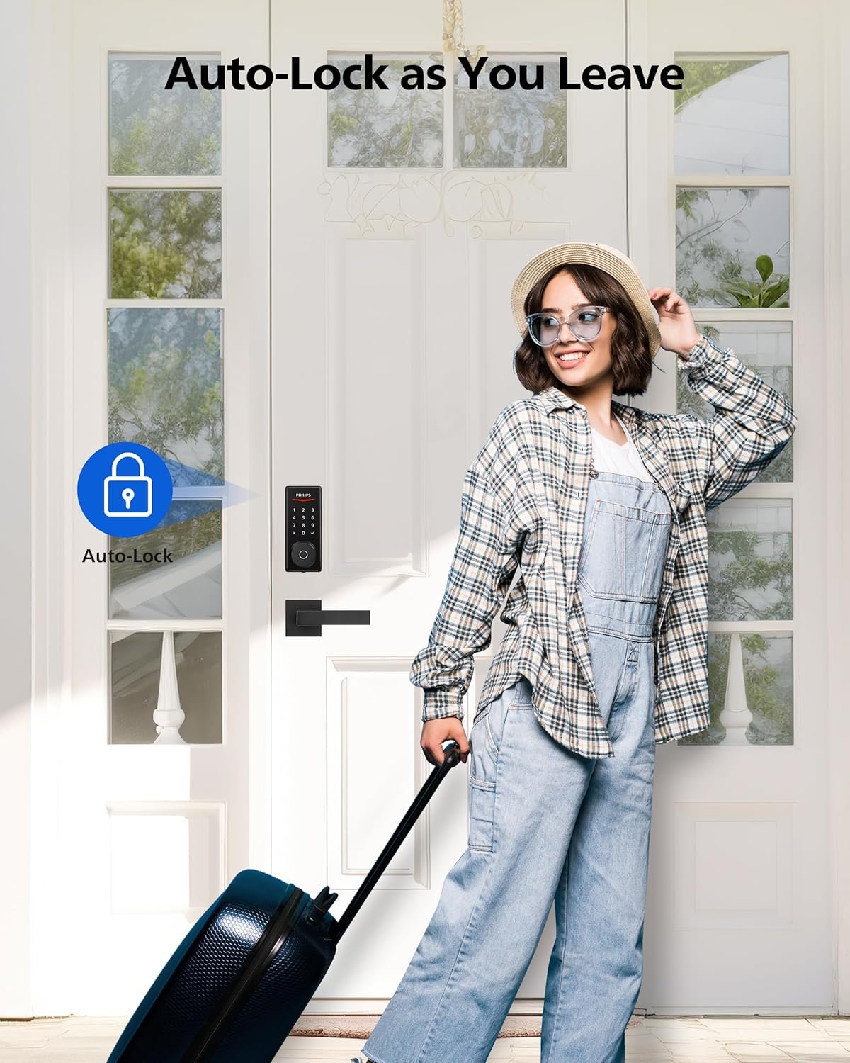 𝐌𝐮𝐥𝐭𝐢𝐩𝐥𝐞 𝐖𝐚𝐲𝐬 𝐭𝐨 𝐔𝐧𝐥𝐨𝐜𝐤: There are four unlocking methods: Fingerprints, PIN Codes, Keys, and APP, you can choose the method that suits your lifestyle and enjoy the convenience of coming home. Experience the joy of keyless entry and unlock your door safely and quickly.