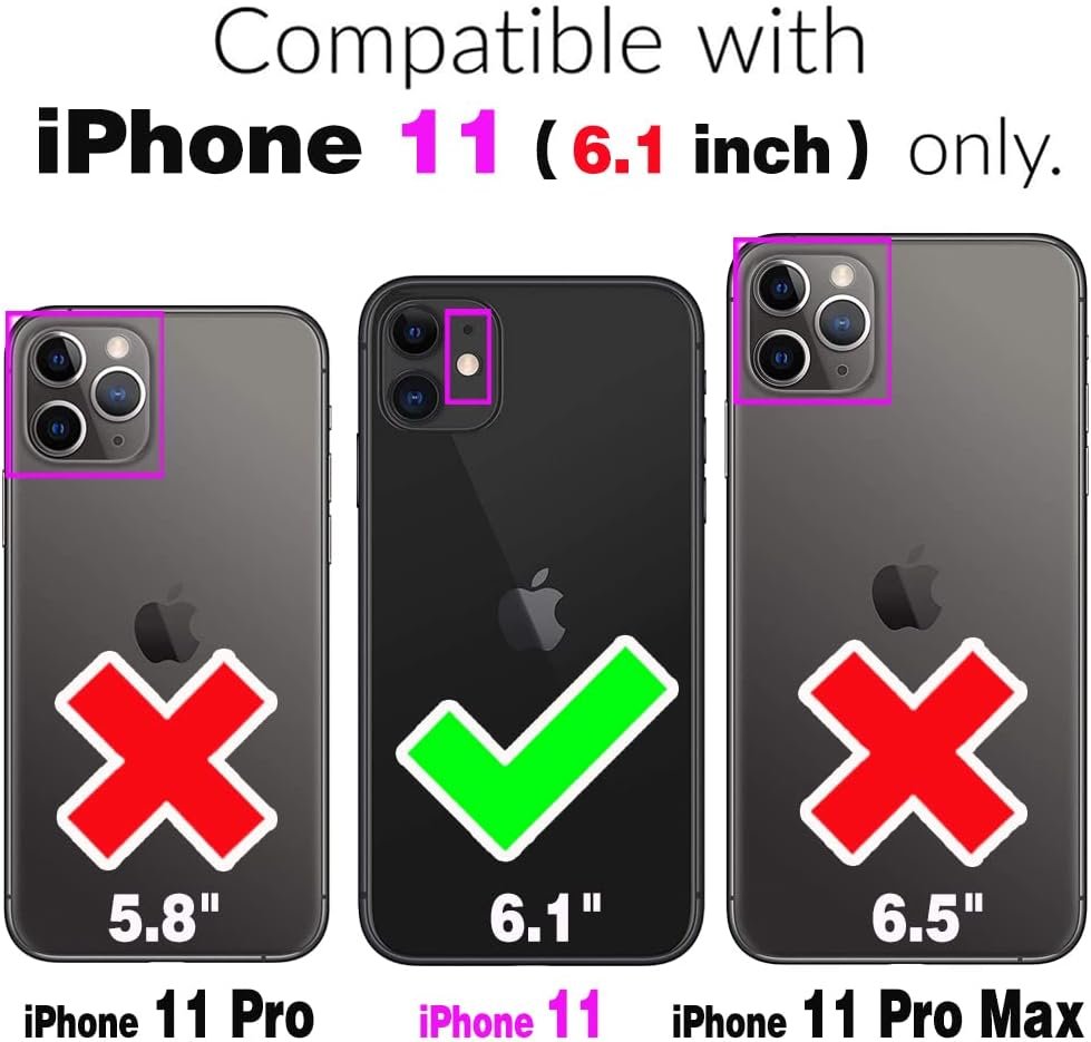 【Compatible Models】:Compatible with iPhone 11 Pro (5.8 inch), NOT compatible with other devices. 【Crossbody & Lanyard Strap】 Don’t worry about forgetting or losing when you go out.Crossbody Strap & Wrist Strap The length of the can be adjusted and taken off. It is perfect for travelling, simply going out or usual daily life [FUNCTIONAL WALLET]: Card Holder : Can hold 10+ Cards/ID/Cash…Cute and Convenient Practical for using.(IDs, Debit Cards, Credit Cards, Drivers License etc.). [CONVENIENT KICKSTAND]: Kickstand Functions is Convenient for Reading, Watching Videos, Browsing the Web and Friends.perfects for video-chatting and movie-watching