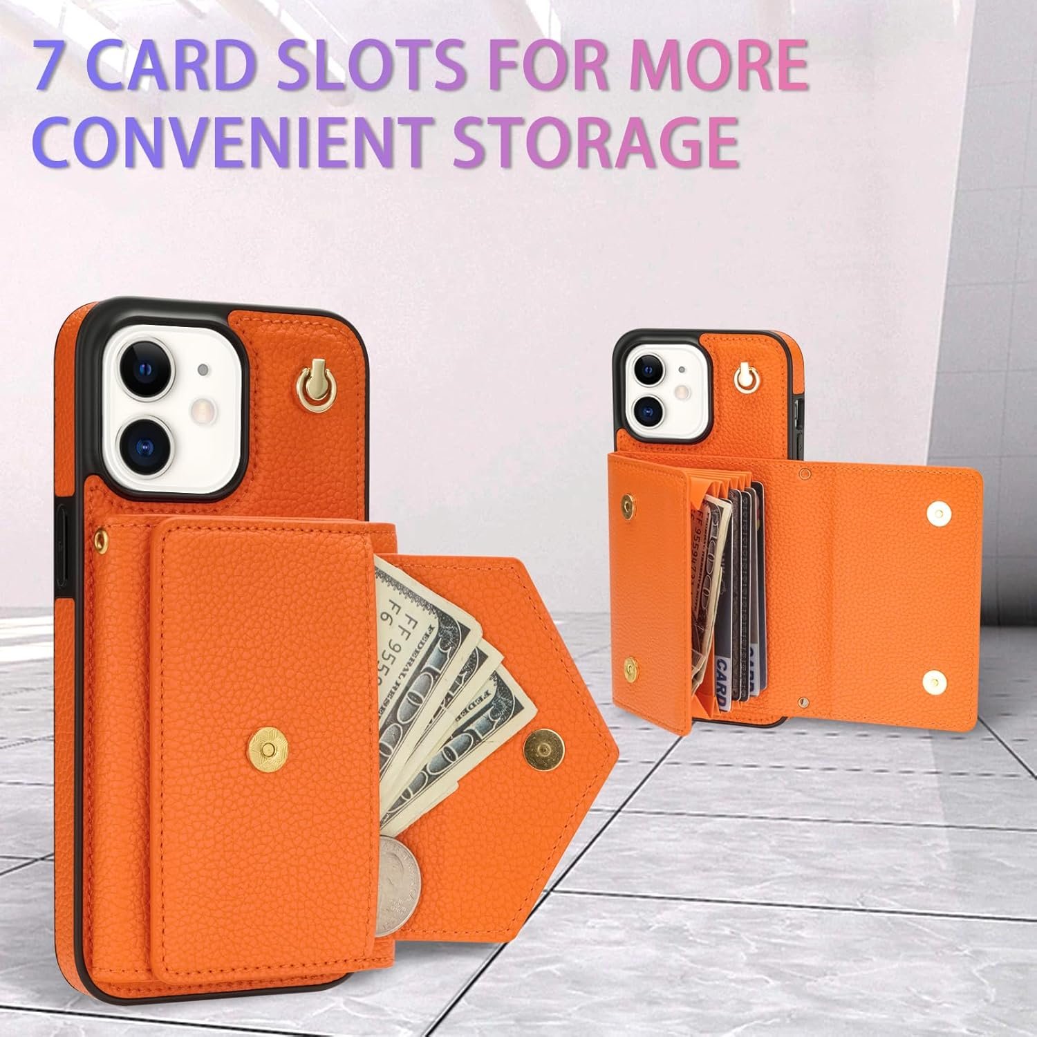Be the first to review “Phone Case for iPhone 11 6.1 Wallet Cover RFID Blocking Credit Card Holder with Crossbody Strap Lanyard Stand Leather Mobile Cell Accessories iphone11case iPhone11 i Phone11 11s XI 11R Girls Orange”