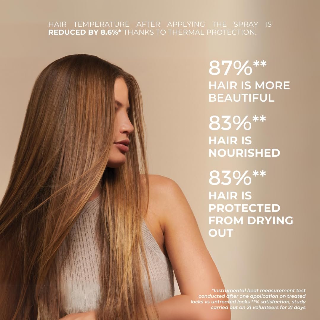 230°C – 446°F Heat protection spray anti-breakage protects hair from breakage during drying, smoothing, brushing. It also repairs, smooths, and reduces frizz.