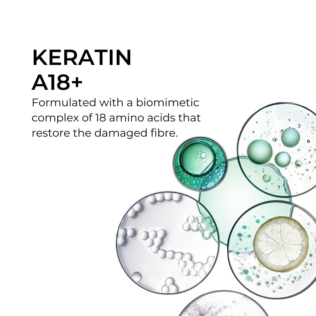 Formulated with a biomimetic complex of 18 amino acids that restore the damaged fiber.