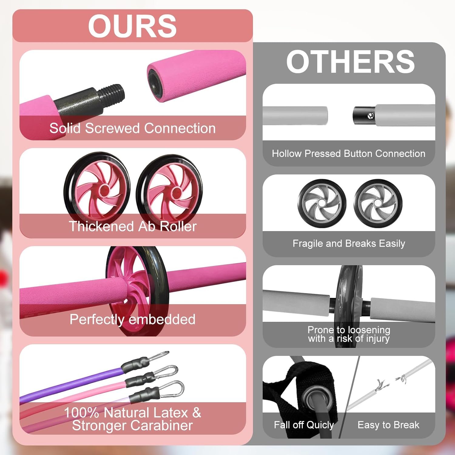 Pilates Bar Kit with Resistance Bands for Working Out, Pilates Equipment with Ab Roller for All Fitness Levels, Portable Home Gym Full Body Workout Equipment for Women&Men