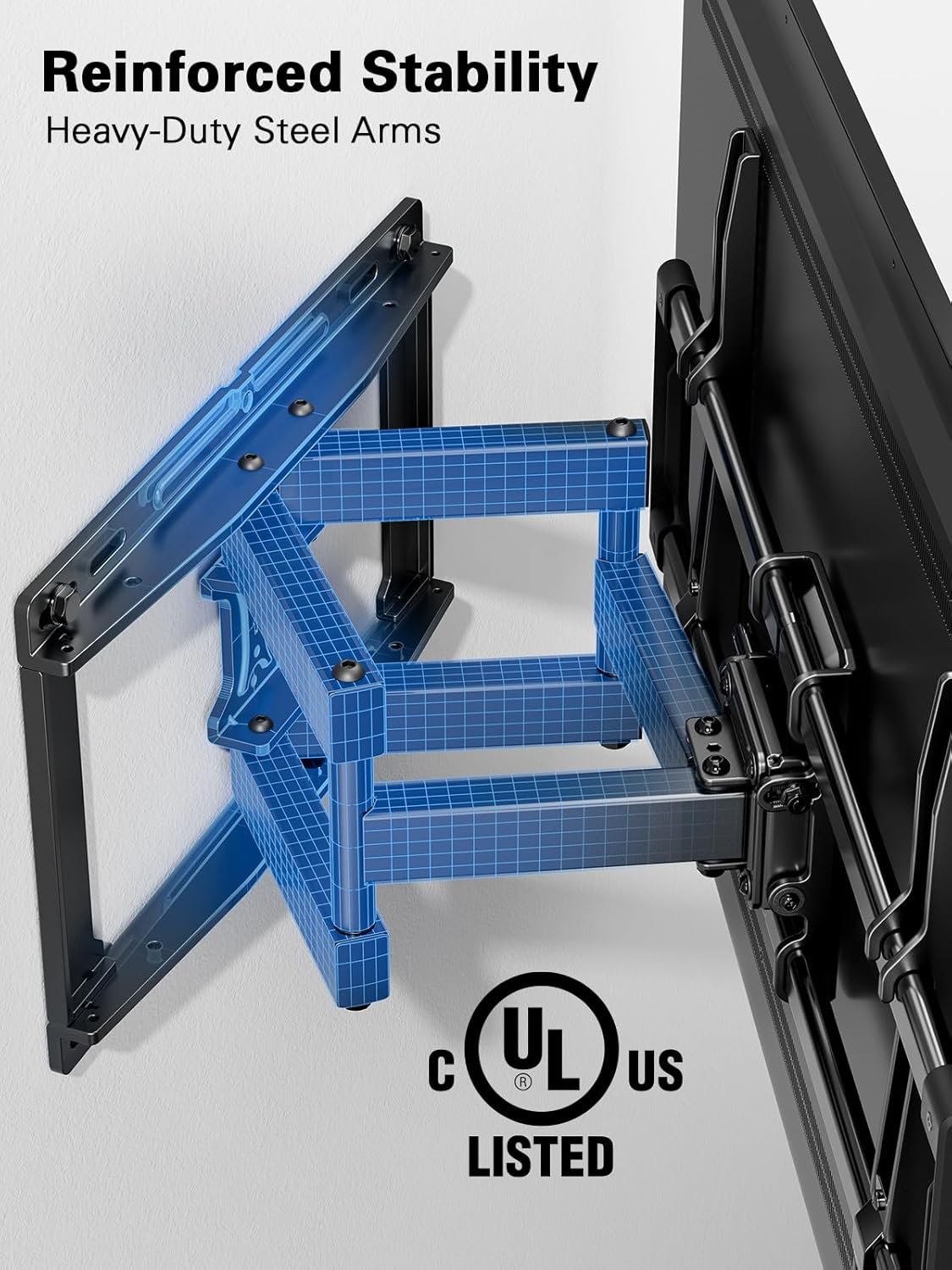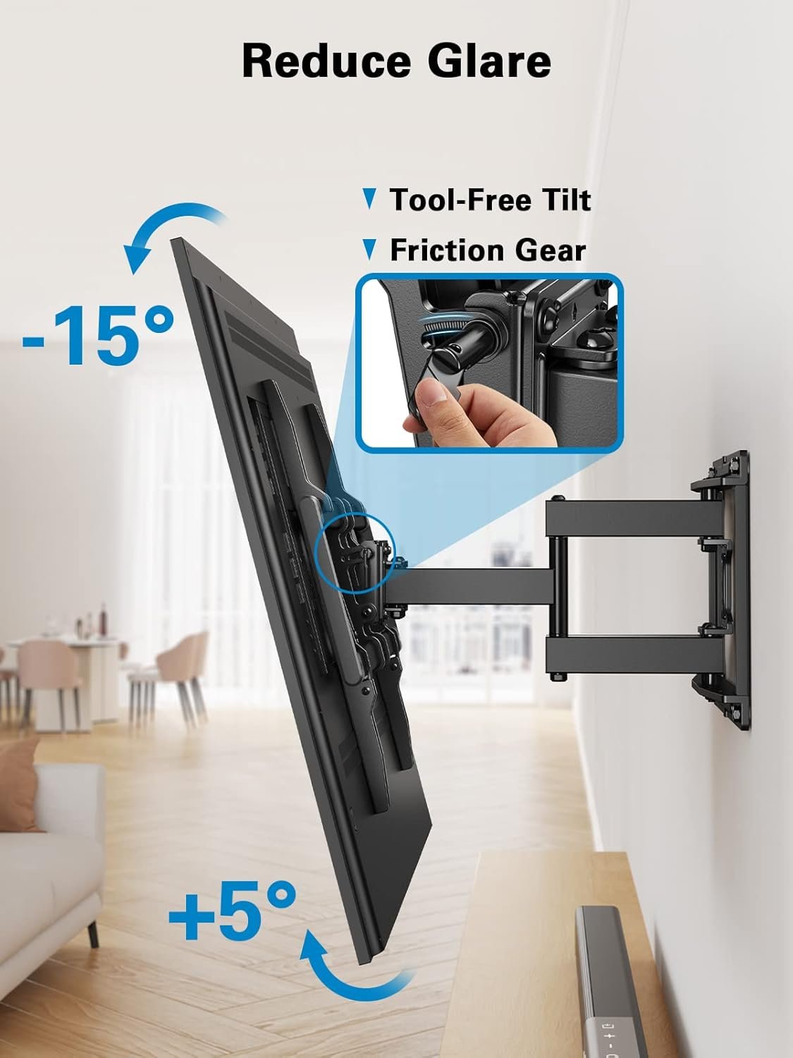 Smooth Adjustment: With 16% improved torque accuracy, this wall mount TV bracket offers smoother and more precise arm movement for easier adjustments. Featuring +/-45° swivel range, 2.89″–16.3″ arm extension, and +5°/-15° tool-free tilt, this TV mount allows you to find the perfect viewing angle.