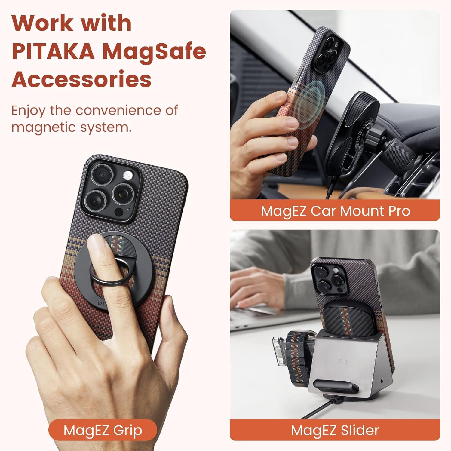 [Fully Compatible with MagSafe] Fully compatible with MagSafe chargers and accessories and PITAKA PitaFlow for Phones (MagEZ Car Mount Pro, MagEZ Slider, and MagEZ Sleeve 3.0). Due to MagSafe SlimBoard technology, the MagEZ Case 5 offers the same wireless charging speed as without a case.